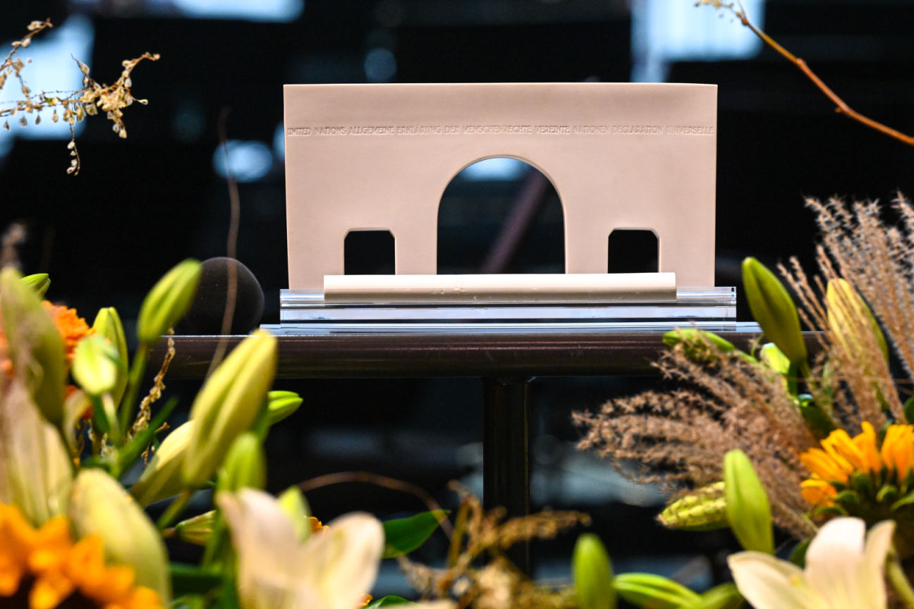 Kjærum sprach in seiner Laudatio über die allgemeine Erklärung der Menschenrechte und warnte vor der Entwicklung von „mehr Sklaven als je zuvor" auf der Welt.
