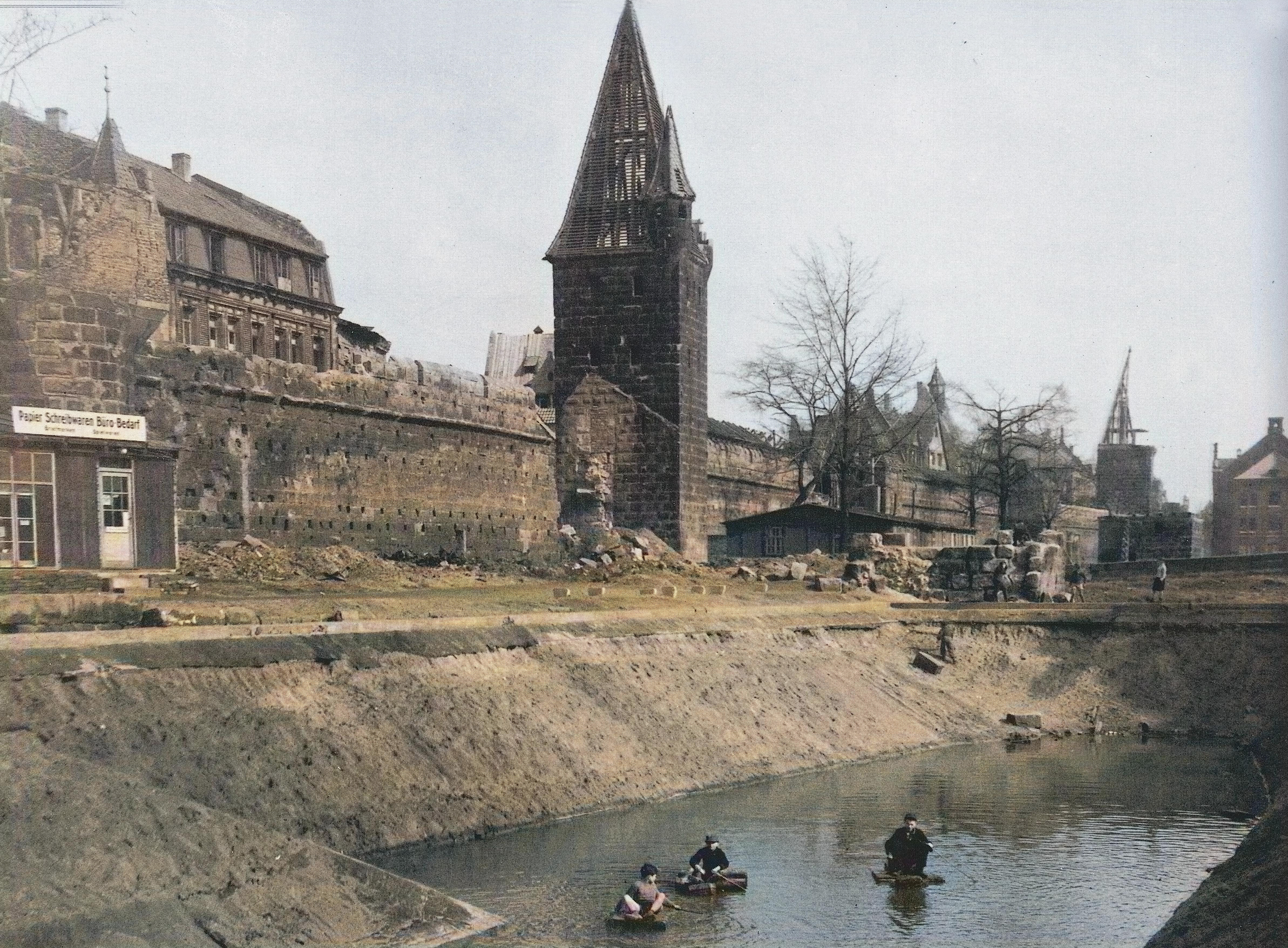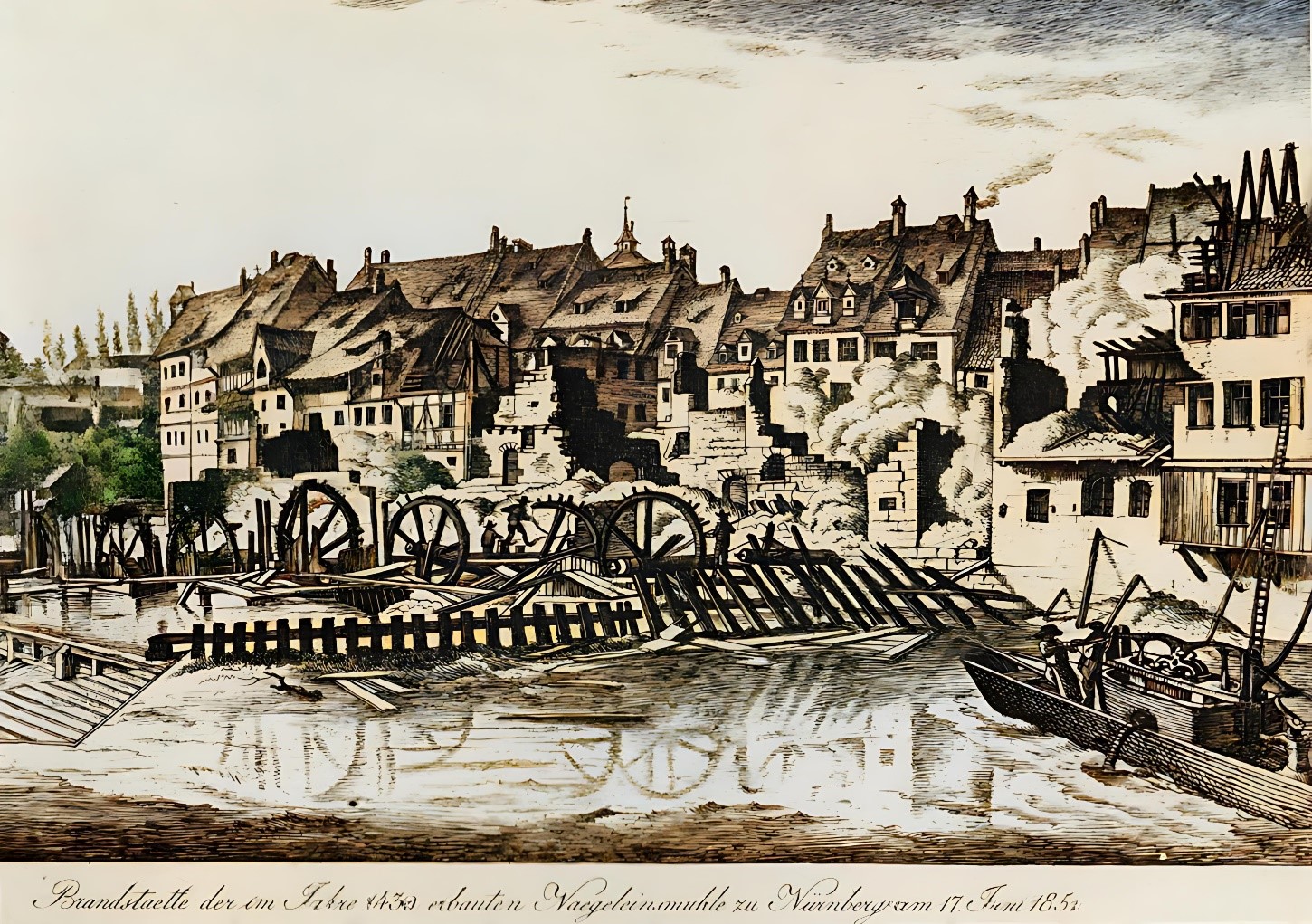 Bis zum Bau des Hochwasserstollens stauten sich immer wieder die Wassermassen der Pegnitz und überschwemmten einen Großteil der Innenstadt.
