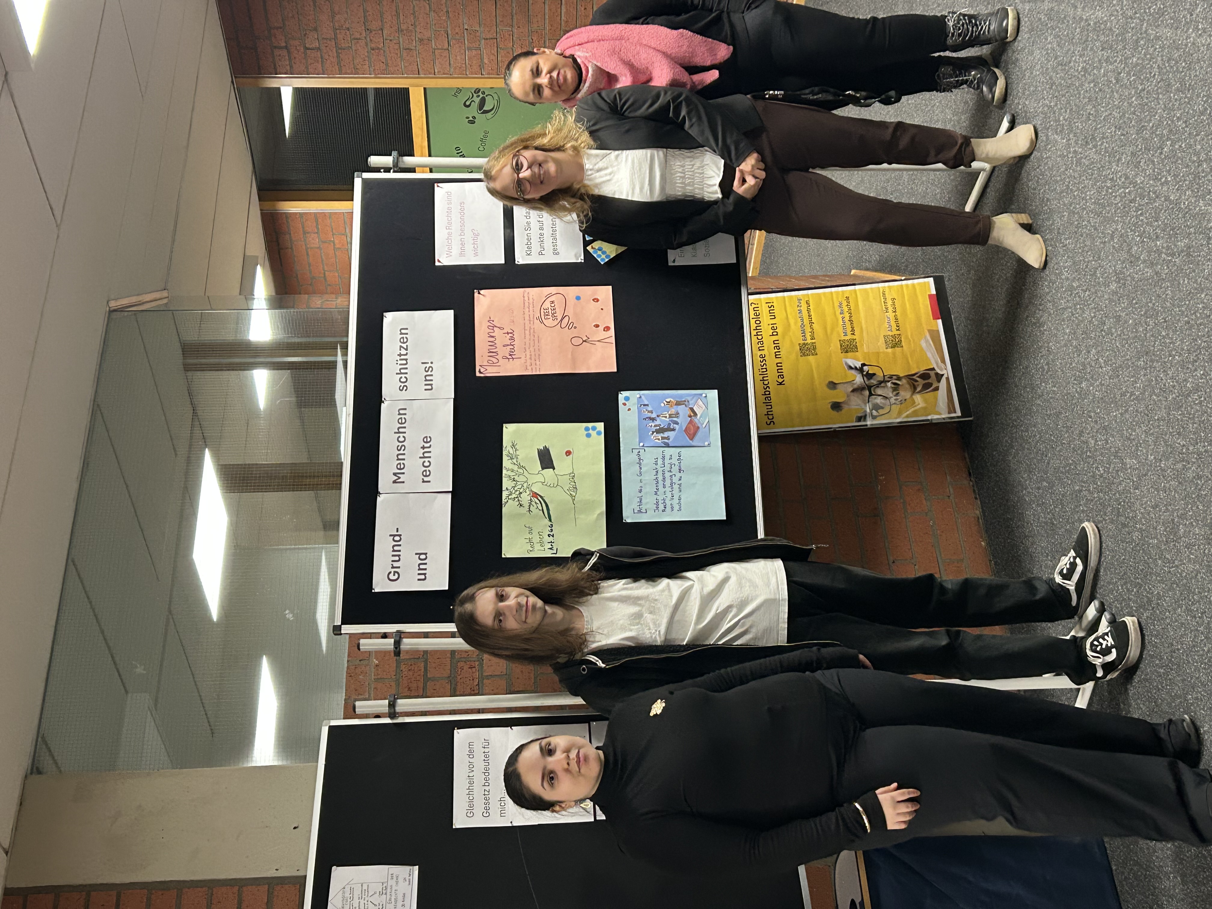 Die 3. Klasse beschäftigte sich über mehrere Wochen mit dem Thema Grund- und Menschenrechte. Einige gestalteten zu einem ihnen besonders wichtigen Menschenrecht ein Plakat. Diese wurden im Hort in der Nähe des Schulcafés an Pinnwänden ausgestellt. Damit auch andere Mitglieder der Schulfamilie sich Gedanken über Rechte machen, wurde über die Menschenrechtskonvention der UN und das Grundgesetz informiert und interaktive Schreibmöglichkeiten geschaffen, um Ideen kollektiv zu sammeln. Menschenrechte schützen uns und sollten im Bewusstsein sein, um Menschenrechtsverletzungen erkennen zu können!