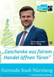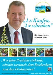 Mit unserer ersten Plakatkampagne in 2016 warb der damalige Oberbürgermeister Dr. Ulrich Maly unter dem Motto "1x kaufen, 2 x schenken" für Weihnachtsgeschenke aus dem Fairen Handel. Denn durch faire Geschenke machen Sie nicht nur Ihren Liebsten eine Freude sondern auch den Bauern und Produzenten in den Entwicklungsländern.