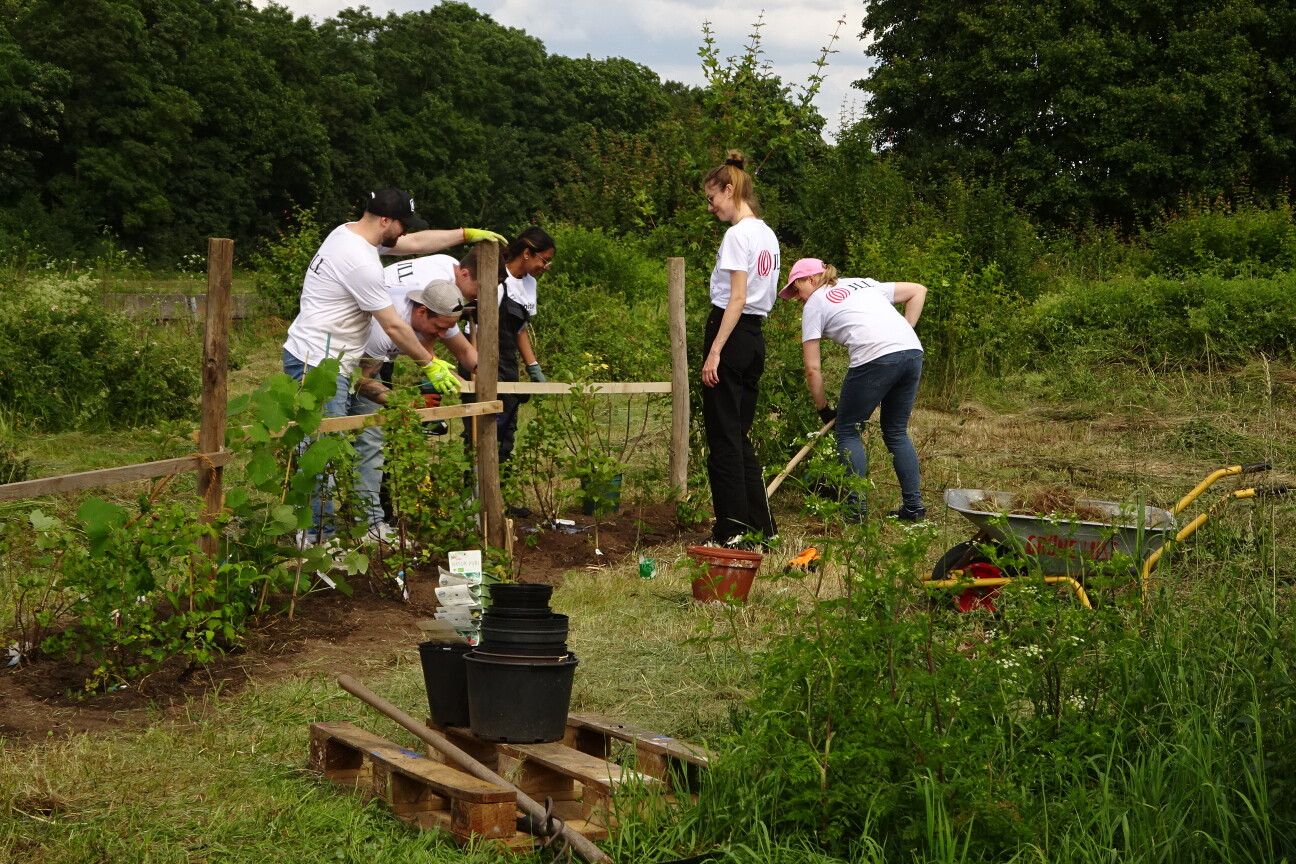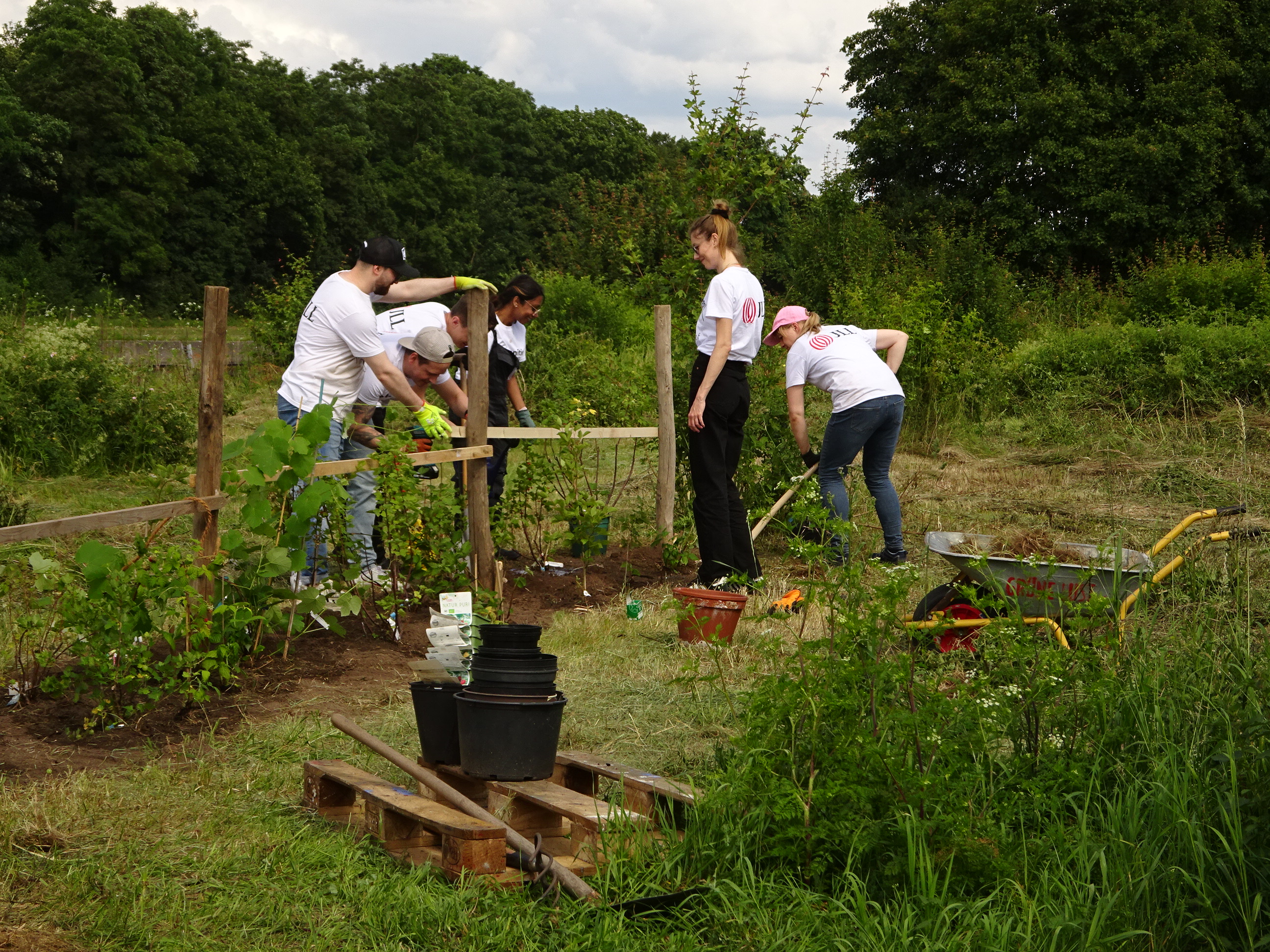 2024 wurde im Westen Nürnbergs, direkt am Main-Donau-Kanal aus einer ungenutzten Brachfläche ein Naturgarten gezaubert. Eine kleine Gruppe von Aktiven legte Beete an, baute Sitzgelegenheiten mit Sonnensegel, einen Geräteschuppen und Komposttoilette. Im Herbst kam sogar noch ein Backofen dazu. So ist in sehr kurzer Zeit eine Fläche entstanden, in der viele Aktionen stattfinden und in der man sich gerne aufhält.