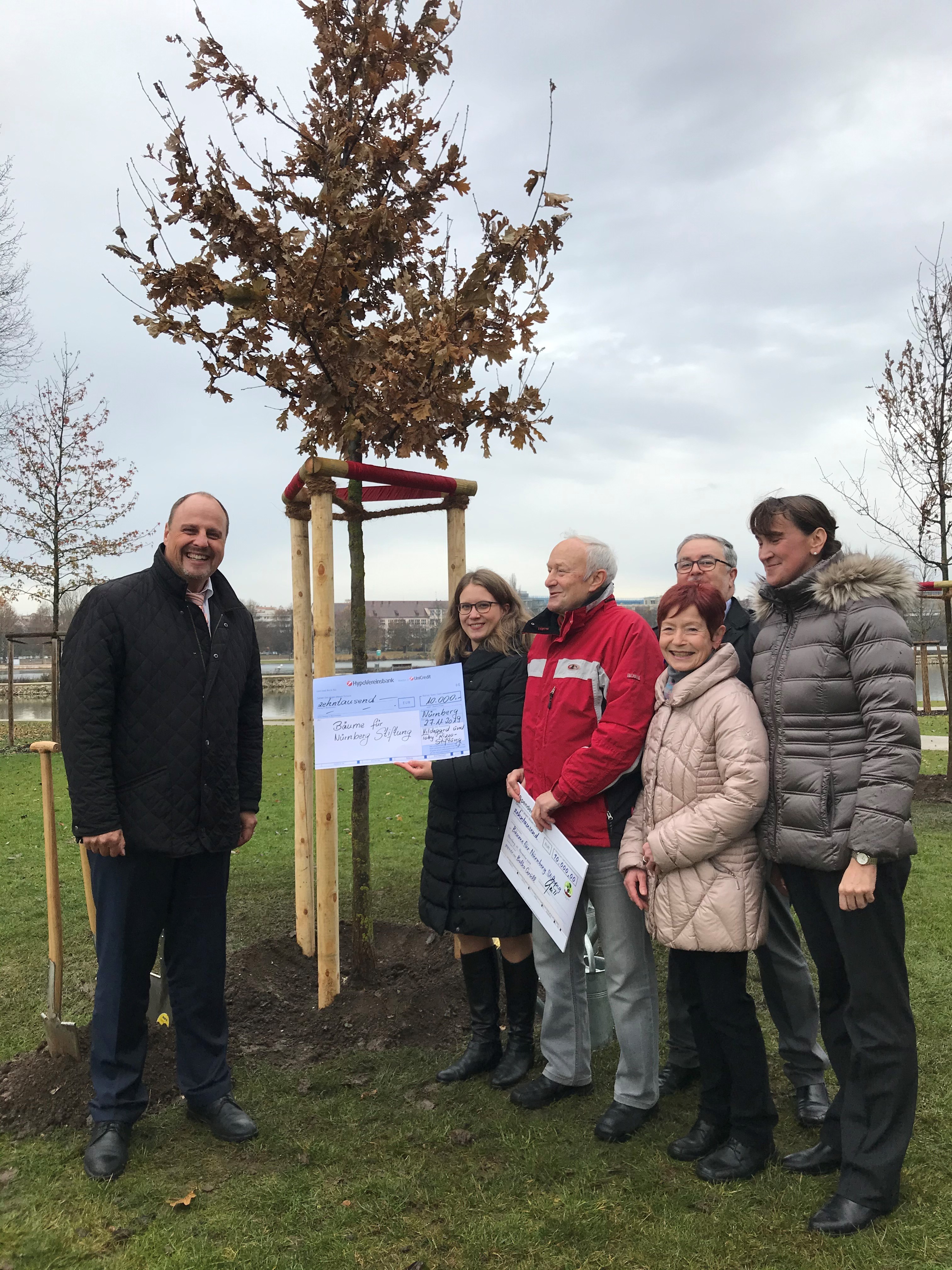Privatmann Bolko Grüll und die „Hildegard-und-Toby-Rizzo-Stiftung“ unterstützen mit ihren jeweiligen Spenden in Höhe von 10 000 Euro die „Bäume für Nürnberg Stiftung“. Als Dankeschön für die Unterstützung wurden am 27. November 2019 jeweils zwei Stieleichen in den Stifterhain gepflanzt.