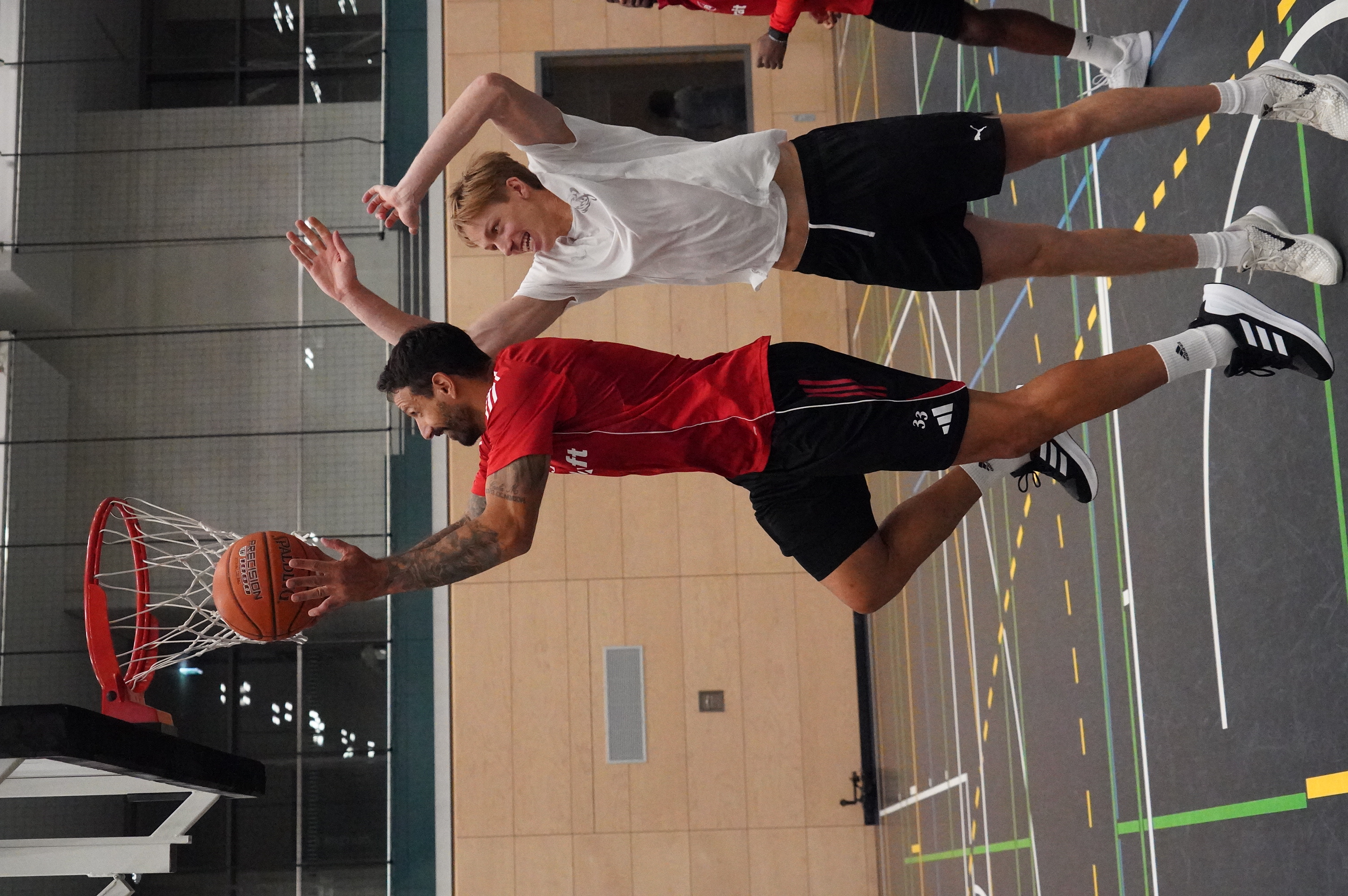 Ein ganz besonderer Tag für die Bertolt-Brecht-Schule: Am Mittwoch, den 8. Oktober 2025, durften wir gleich zwei Profi-Teams bei uns begrüßen – die Basketballer der Nürnberg Falcons und die Fußballer des 1. FC Nürnberg. Mit dabei waren auch die beiden Cheftrainer Miroslav Klose (1. FCN) und Ralph Junge (Falcons) sowie Bastian Doreth, Nachwuchskoordinator der Falcons und ehemaliger Schüler der Bertolt-Brecht-Schule.