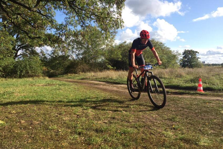 Start für das Cross-Country Rennen war um 14.30 Uhr. Nach einem kurzen Warm-Up auf dem Rollfeld ging es auch schon in die Startreihen. Aus der vierten Reihe aus startend ging es dann mit 60 Sekunden Rückstand auf die erste Reihe in das Rennen. Anfangs konnten die fünf Jungs noch ein gutes Tempo zusammenfahren, jedoch mussten von Runde zu Runde ein weiterer Fahrer die Gruppe verlassen und fielen dem Tempodiktat der Spitzengruppe zum Opfer. In Runde 4 von 9 musste Valentin Hofmann aufgrund eines Defektes am Vorderrad das Rennen frühzeitig beenden. In der Zwischenzeit konnte Moritz Rossner sich bis an die Spitze des Feldes vorkämpfen und mit einem weiteren Fahrer aus Bayern ein ordentliches Tempo fahren.