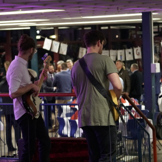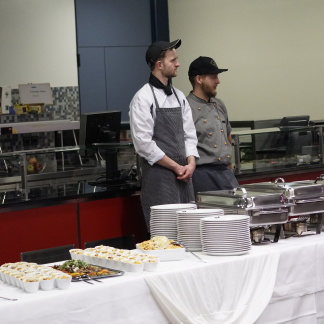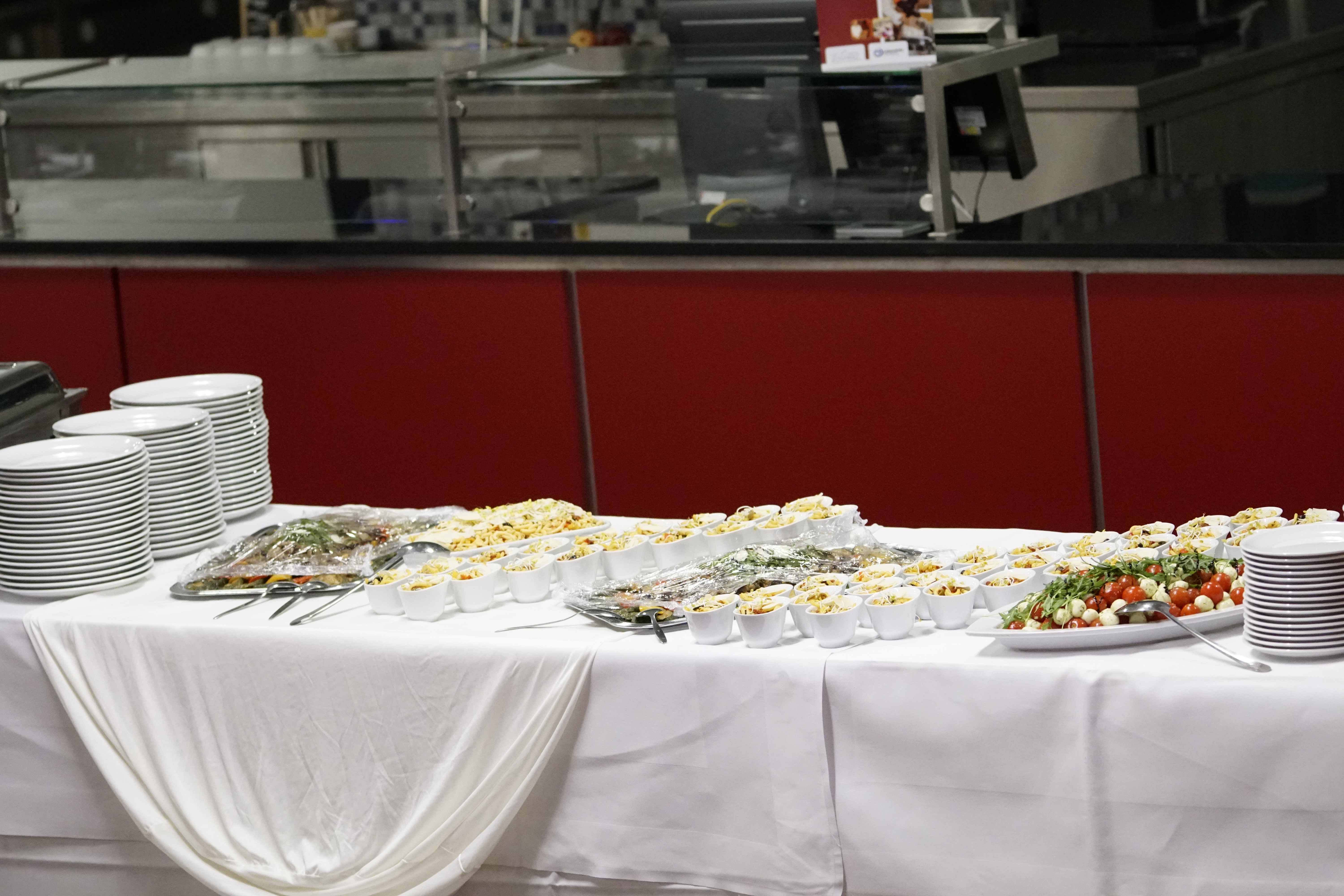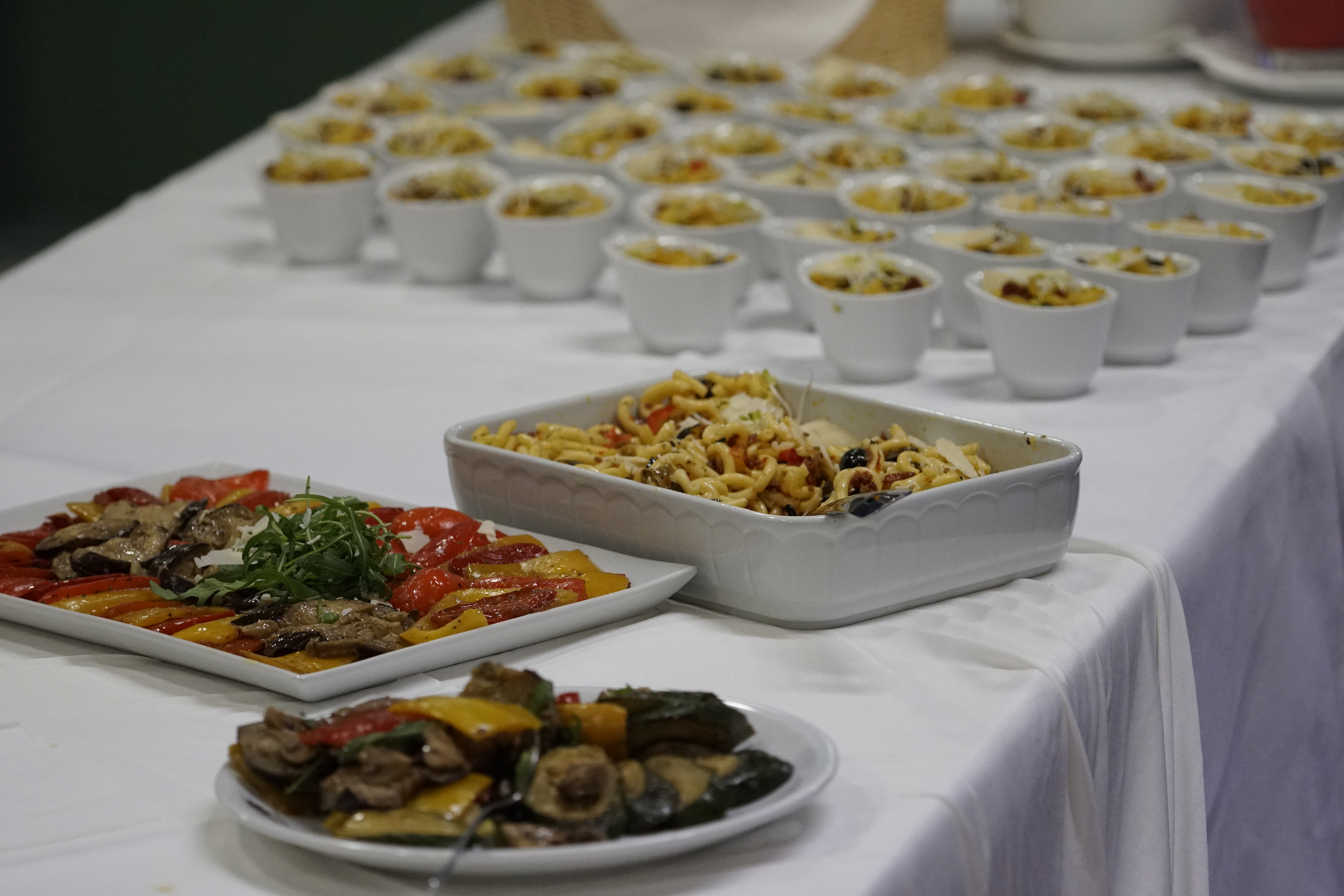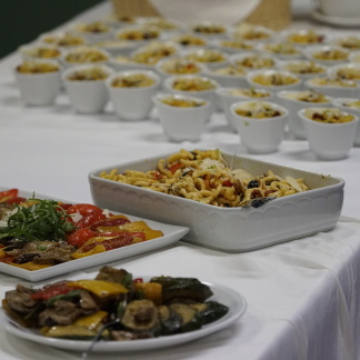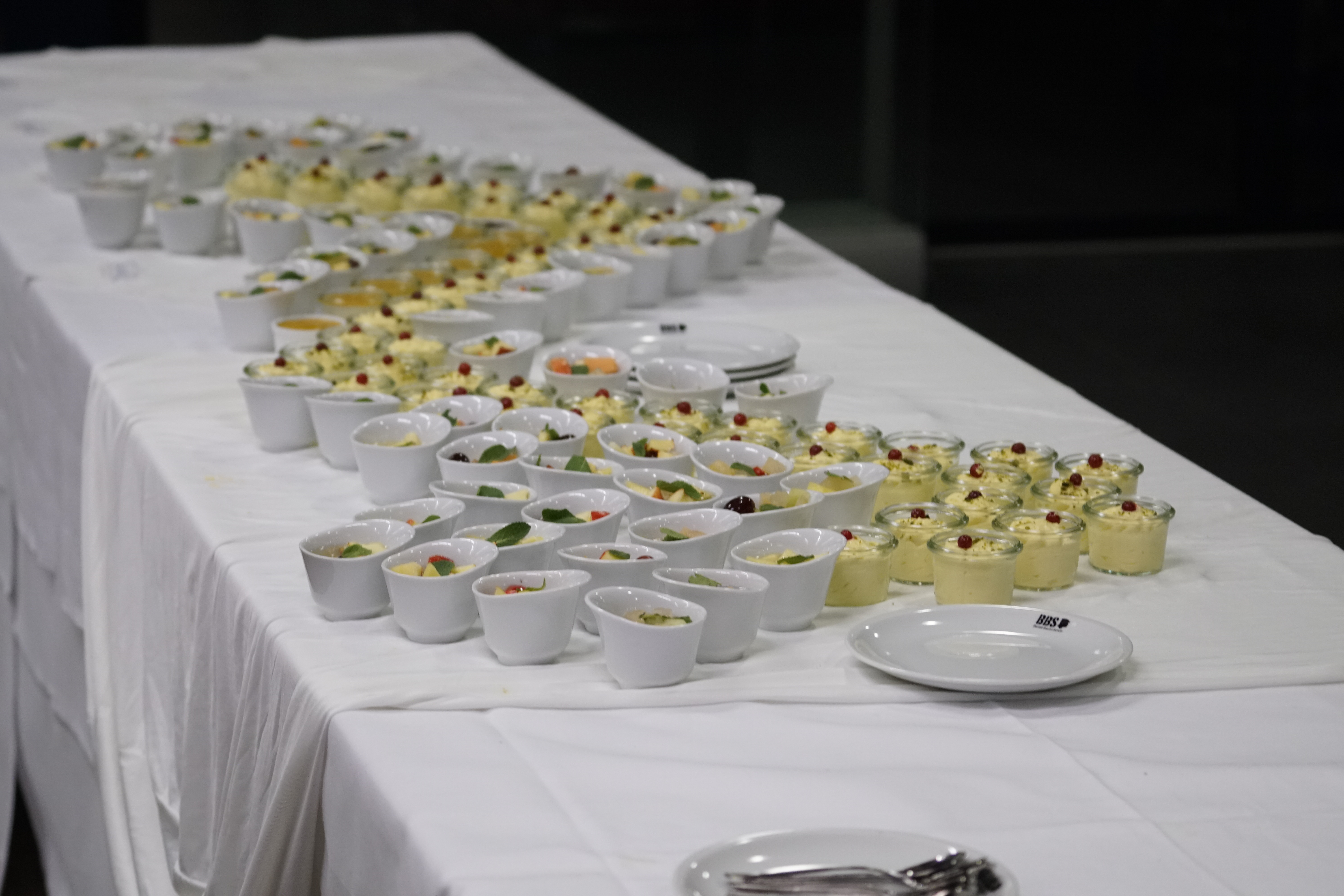 Kulinarische Genüsse bereitete die Catering Toleranz der Lebenshilfe Nürnberg, die auch die Mensa der Bertolt-Brecht-Schule betreibt, zu. In stilvollem Ambiente ließen sich alle Beteiligten die Vor-, Haupt- und Nachspeise schmecken. Musikalisch begleitet wurde der Abend durch drei Künstler der Nürnberger Combo "Gonzáles Brothers and the Gang" – mit der richtigen Mischung aus Swing und Jazz sorgten Bass, Schlagzeug und Gitarre für eine tolle Atmosphäre.