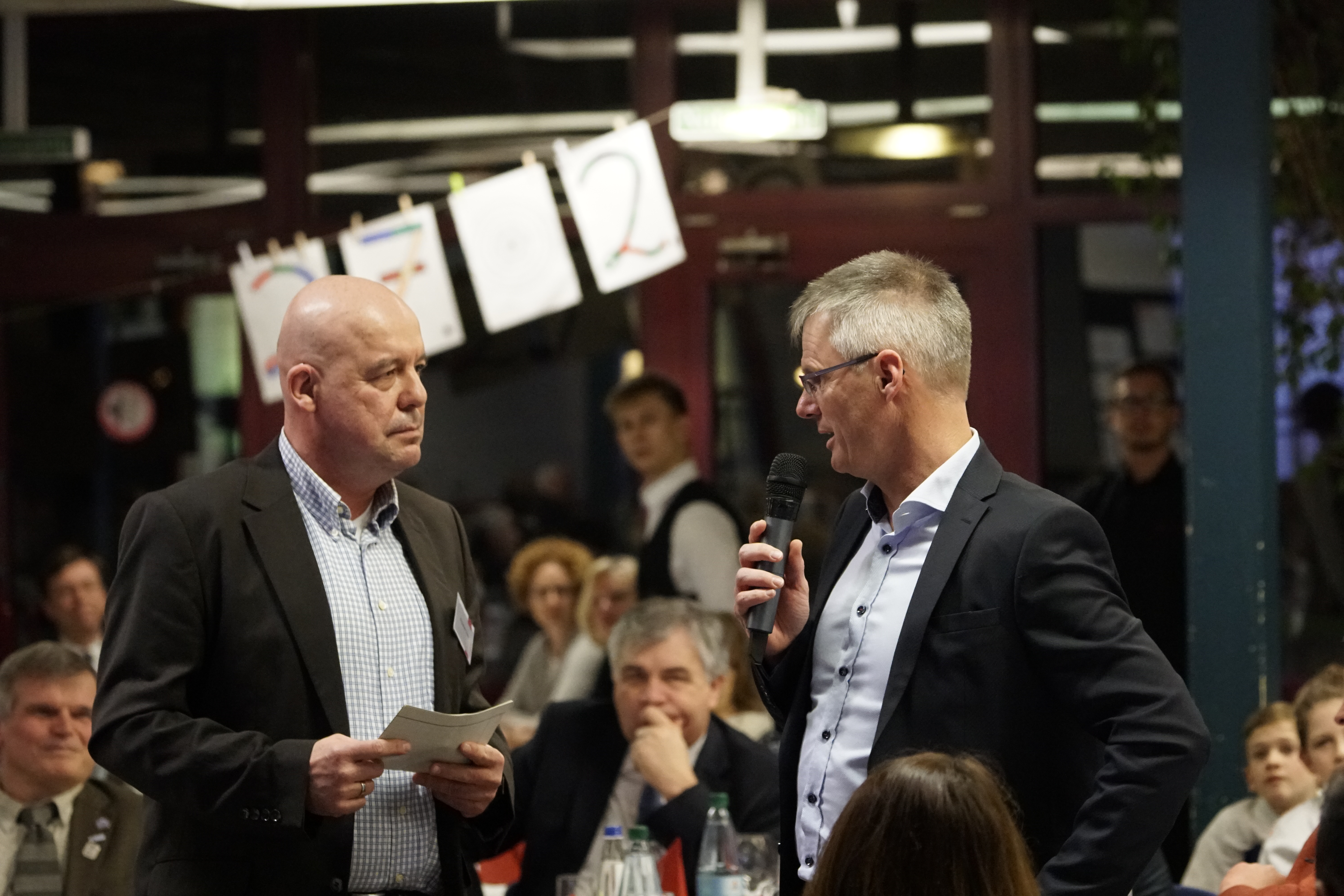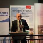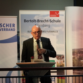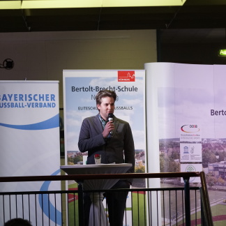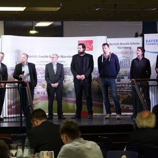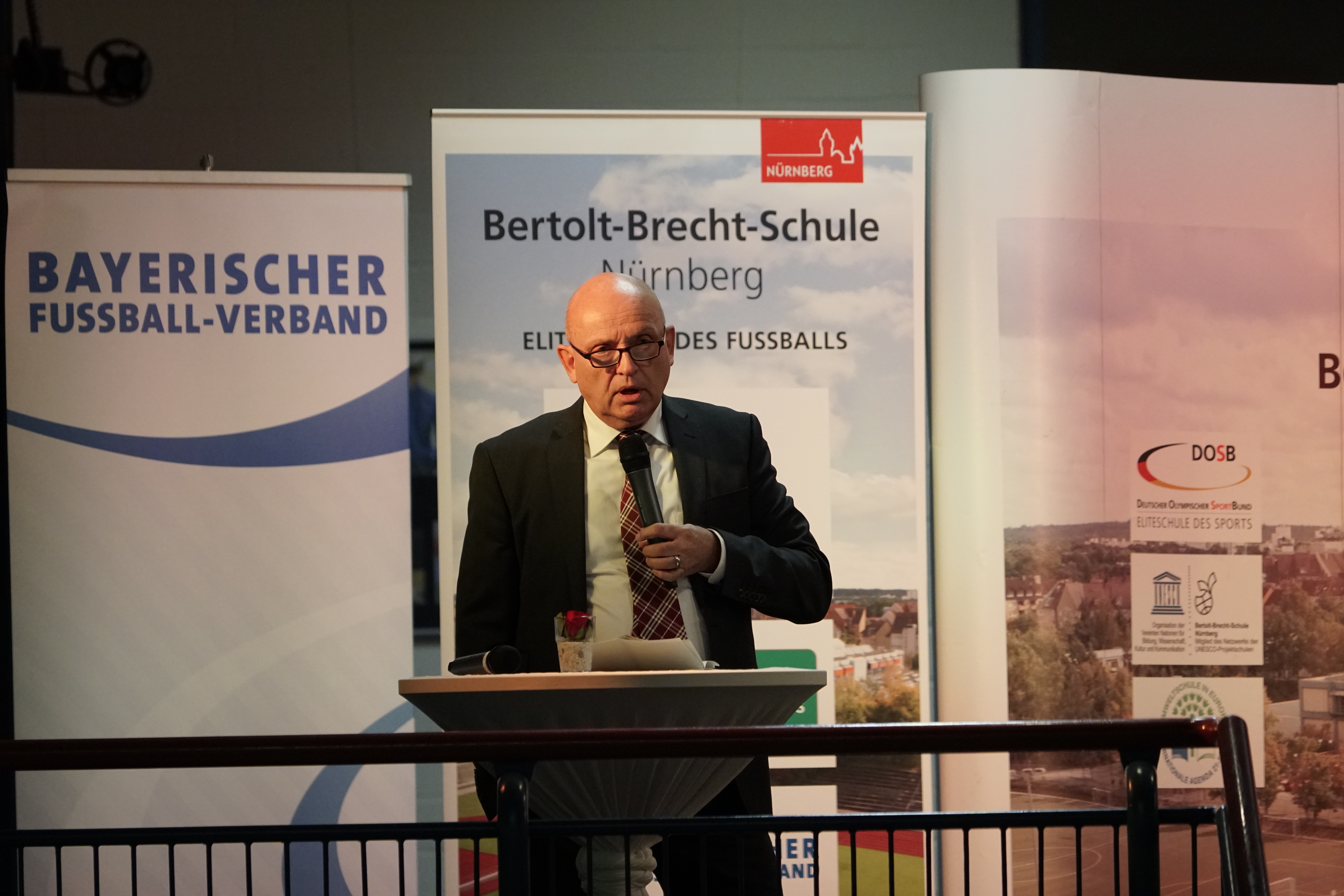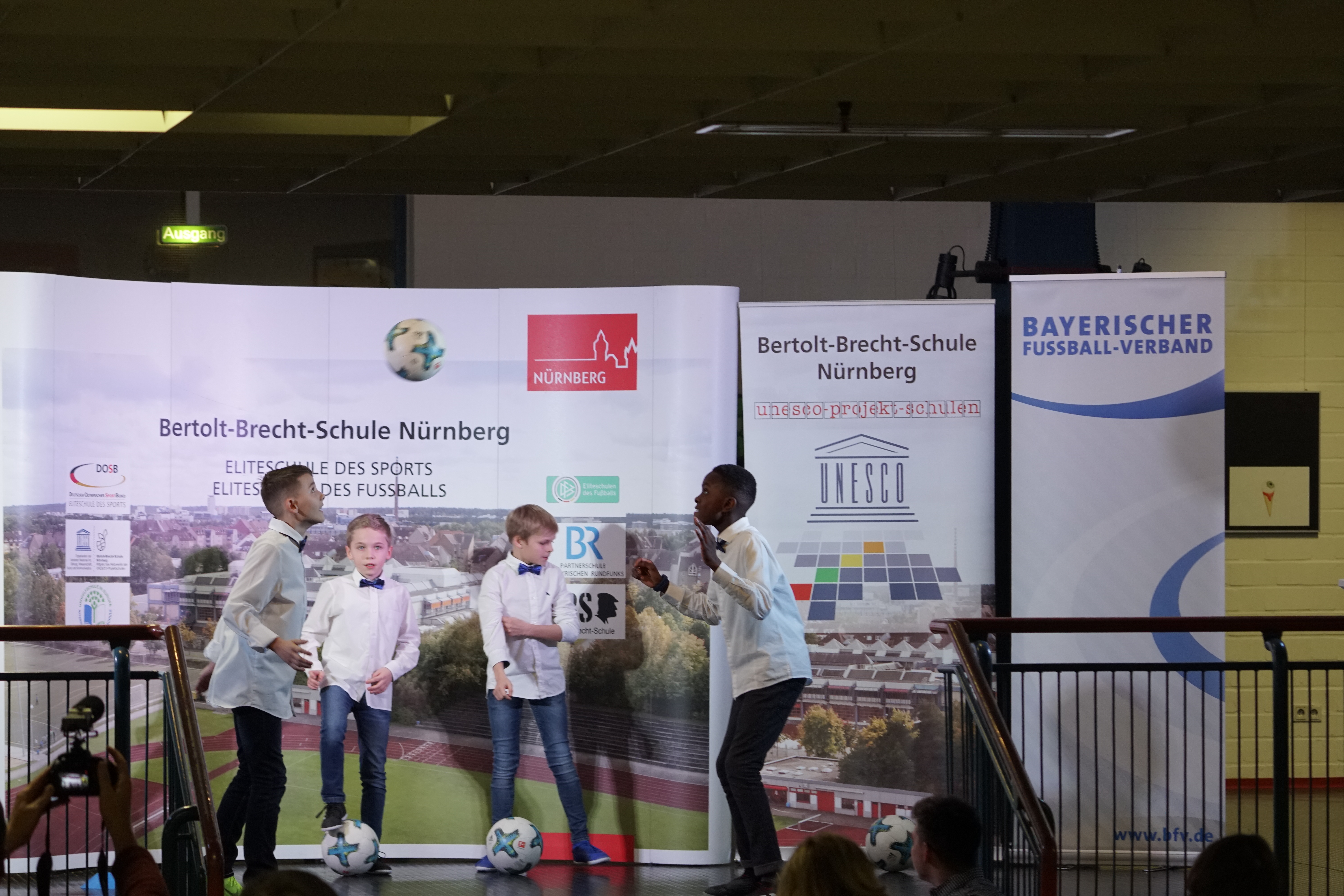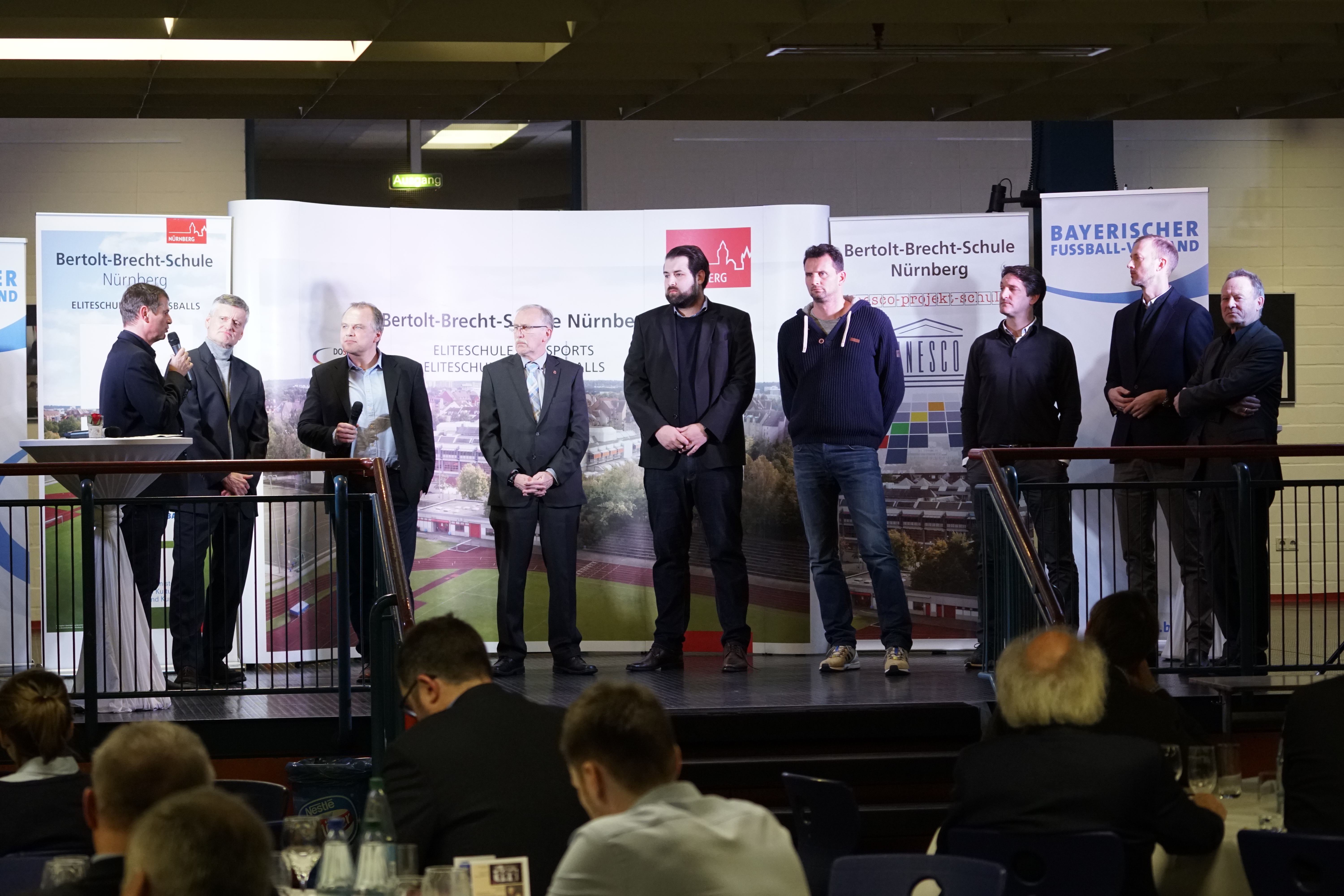 Moderiert wurde der Abend von Immanuel Kästlen, dem Pressesprecher der SpVgg Greuther Fürth und ehemaligen Schüler der Bertolt-Brecht-Schule. In einer Talkrunde „Werte im Fußball bzw. Sport“, die von Jürgen Weber (BFV) durchgeführt wurde, äußerten sich verschiedenen Vertreter der Vereine und Verbände zu Themen wie Vertrauen, Fairness oder Leistung. So gaben der Vorstand Finanzen des 1. FCN, Niels Rossow, die Leiter der Nachwuchsleistungszentren von Nürnberg und Fürth, Peter Laudenklos und Michael Meier, der Aufsichtsratsvorsitzende der Spielvereinigung, Werner Brand, der Torwarttrainer der Frauennationalmannschaft, Michael Fuchs, Dieter Habermann vom Bayerischen Fußballverband sowie der Schulleiter der Mittelschule, Harry Windisch und Ex-Profi und Lehrer, Dieter Frey ihre Statements ab.