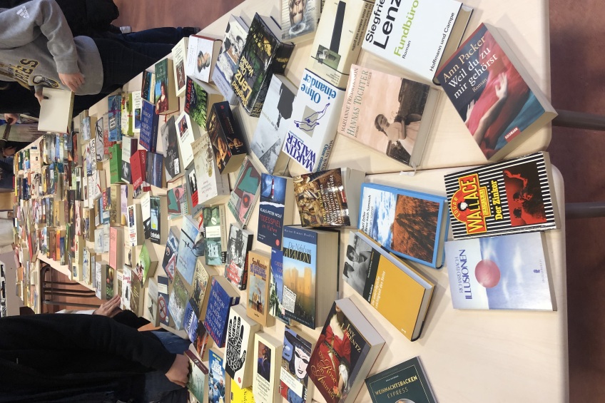 Auf großes Interesse stieß am 06.12.2023 unser erster Bücherbasar in diesem Schuljahr. Einmal pro Halbjahr organisiert unsere SMV einen solchen, bei dem sich unsere Schülerschaft kostengünstig mit allerlei interessantem und spannendem Lesestoff eindecken kann. Dank tatkräftigem Einsatz freiwilliger Helferinnen und Helfer konnten sich unsere "Gäste" zudem mit schmackhaften Köstlichkeiten in Form von Kuchen, Muffins und Plätzchen eindecken.