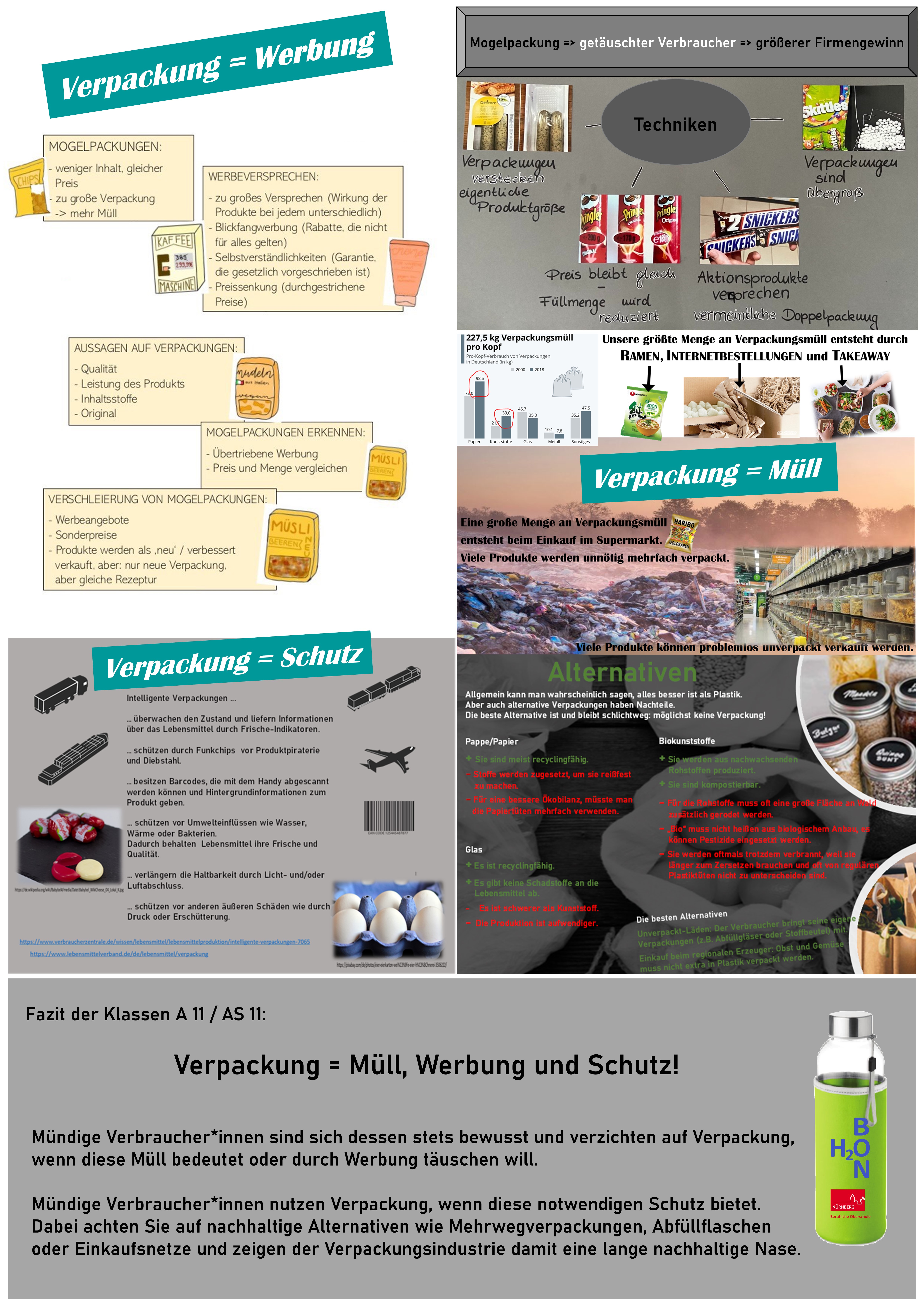 Die Klassen AS 11 und A 11 widmeten sich unter Anleitung von Frau Mundel dem Thema „Verpackungen – Müll, Werbung, Schutz?“ und erstellten ein Infoplakat. Unsere Beiträge haben auch die Jury überzeugt und wir erhielten im Juli 2021 die Auszeichnung.