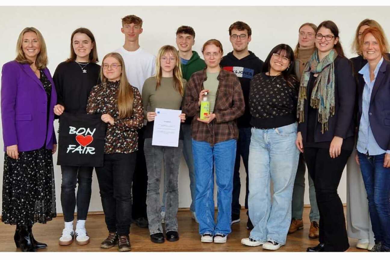 Am 22.10.2024 nahmen acht ausgewählte Schülerinnen und Schüler der Klassen A 12 und AS 13 gemeinsam mit den beiden Lehrkräften Alexandra Stolle und Monika Mundel den Wettbewerbspreis des Landesschülerrats 2024 als eine von vier Schulen aus ganz Bayern entgegen.