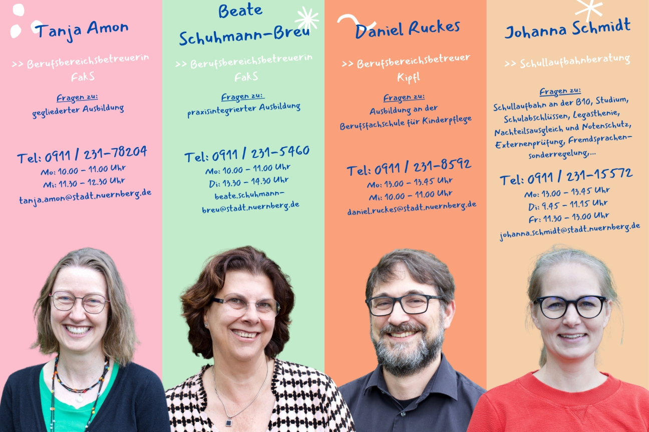Für Fragen zur Berufsausbildung an der Beruflichen Schule 10 wurden folgende Telefonsprechzeiten für Sie eingerichtet: