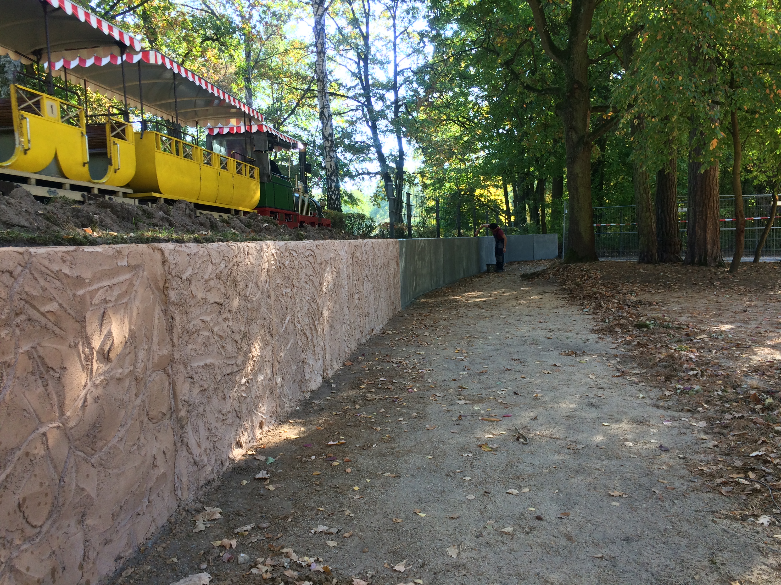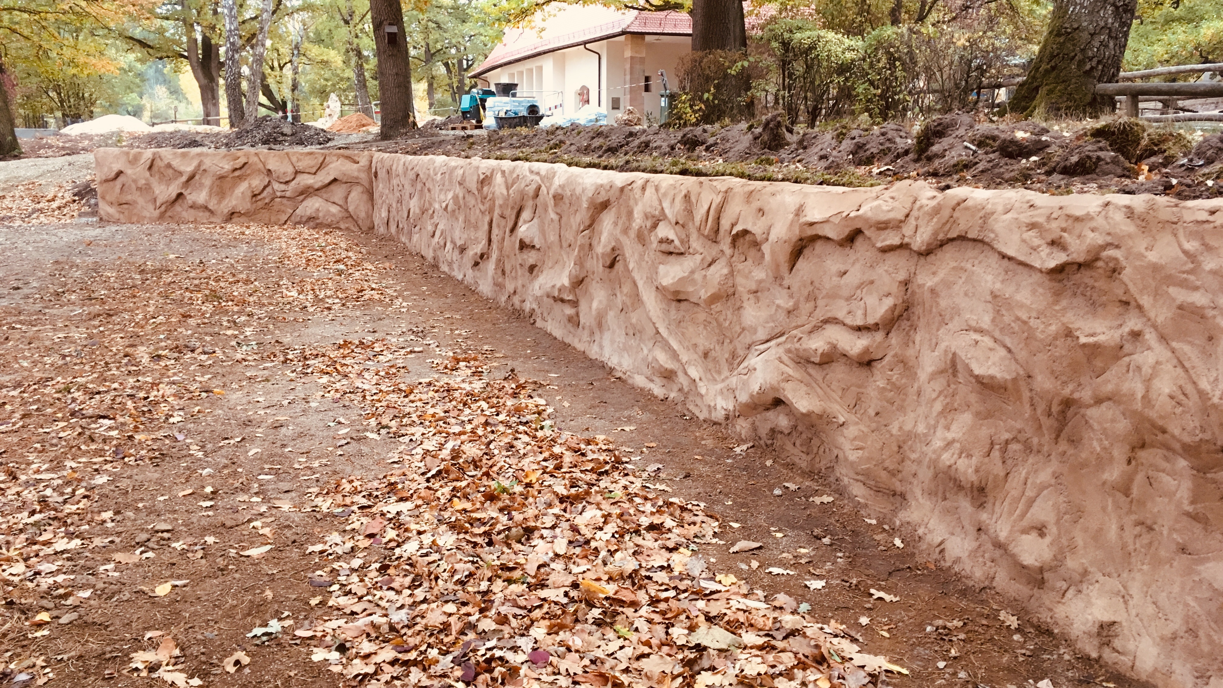 Auch das Freigehege der Somali-Wildesel und Mendesantilopen wird renoviert. Hier werden wir ein Fundament für den Tierunterstand betonieren und eine lange Mauer in Steinoptik verputzen.