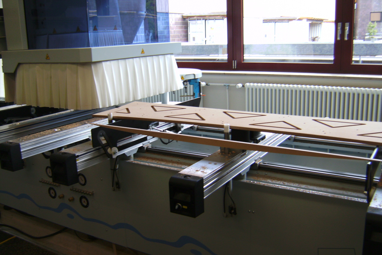 Für das ISB (Institut für Schulqualität und Bildungsforschung) fertigte die Berufsschule 11 insgesamt 22 Prospektregale an. Diese Regale werden weiterhin auf Messen eingesetzt. Die Passgenauigkeit der Regale und die hohe Qualität, zeigen immer wieder aufs neue die Präzision, die die Schüler bei der computergestützten Fertigung erlernen und umsetzen.