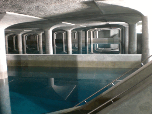Der Verteilerbehälter Krottenbach fasst 60.000 m³. Mit einem gesamten Speichervolumen von 100.000 m³ wird der Tagesausgleich der unterschiedlichen Entnahmemengen gesteuert.