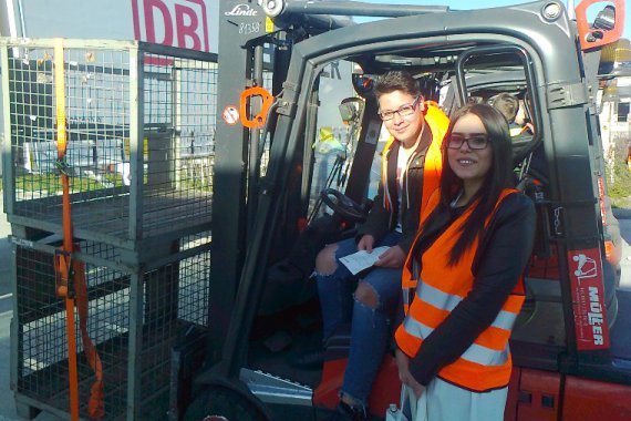 So konnten die Schülerinnen und Schüler Einblicke in die Berufe Kauffrau/-mann für Speditionsdienstleistungen und Fachlagerist bekommen. An verschiedenen Stationen durfte die Klasse z. B. ein Gabelstapler ausprobieren, anhand von Kärtchen einen LKW optimal beladen oder unterschiedliche Waren dem richtigen Transportmittel (Luft-, Schiff-, Schienen- oder Landverkehr) zuordnen.