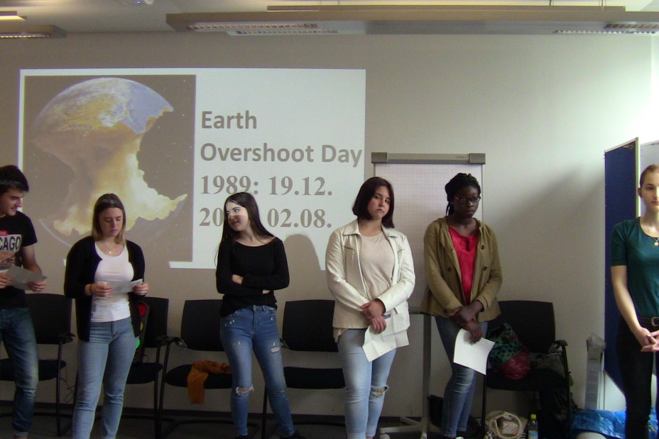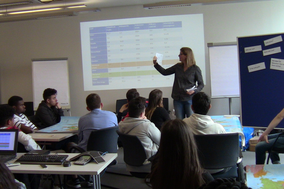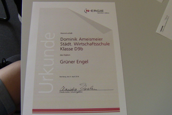 Am Montag, den 09.04.2018, trafen sich Schülerinnen und Schüler aus verschiedenen Klassen zu einem Ausflug der „Grünen Engel“. Wir versammelten uns am Eingang der Schule und gingen zur N-ERGIE am Plärrer. Dort angekommen holten uns zwei nette Damen ab und begleiteten uns zu einem Raum. Anschließend stellten sie uns eine Power-Point-Präsentation vor, in der es um den „Ökologischen Fußabdruck“ sowie um das Gegenteil der „Ökologischen Handabdrücke“ ging. Daraufhin spielten wir ein Spiel, bei dem wir verstehen sollten, dass jeder für die Welt verantwortlich ist. Danach wurden uns persönliche Fragen gestellt, wie z. B. ob wir darauf achten, welche Klamotten wir kaufen, wie viele Quadratmeter unsere Wohnungen haben und ob wir häufig Auto fahren oder wie oft wir mit dem Flugzeug fliegen. Wir haben anhand der Antworten gesehen, wie viel wir jährlich von dem hinterlassen, was nicht gut für die Umwelt ist. Zum Ende bekamen wir eine Weltkarte und wurden gefragt, welche Länder den größten ökologischen Fußabdruck besitzen und welche den kleinsten. Fakt ist, dass niemand gedacht hätte, das Katar, eins der kleinsten Länder, den größten ökologischen Fußabdruck hat, viel größer sogar als Amerika und China. Zum Schluss sollten wir uns überlegen, was wir selbst für unsere Welt besser machen können!