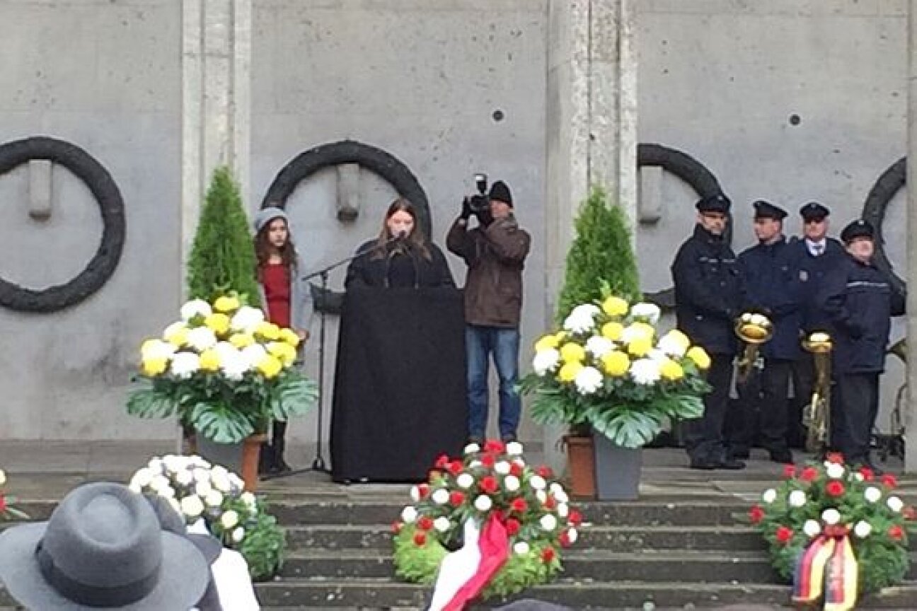 Bei der offiziellen Veranstaltung zum Volkstrauertag am 19.11.2017 stellten drei Schülerinnen Amelie Weißhaupt, Nehir Karatastan und Sila Güven der Klasse V8D das Projekt vor.