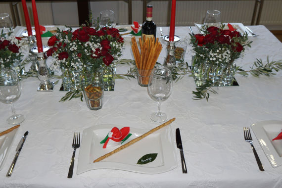 Bei der komplexen Prüfungsaufgabe hatten sich alle vier Teilnehmerinnen für den Themenbereich Tischschmuck entschieden. Bei der zu bewältigenden Aufgabe gestalteten die Schülerinnen einen mediterranen Blumenschmuck für die Feier des ersten Hochzeitstages in einem italienischen Restaurant. Diese Aufgabe wurde unterschiedlich interpretiert und zeigte damit die Vielfalt an Möglichkeiten und die Kreativität der Gestalterinnen.