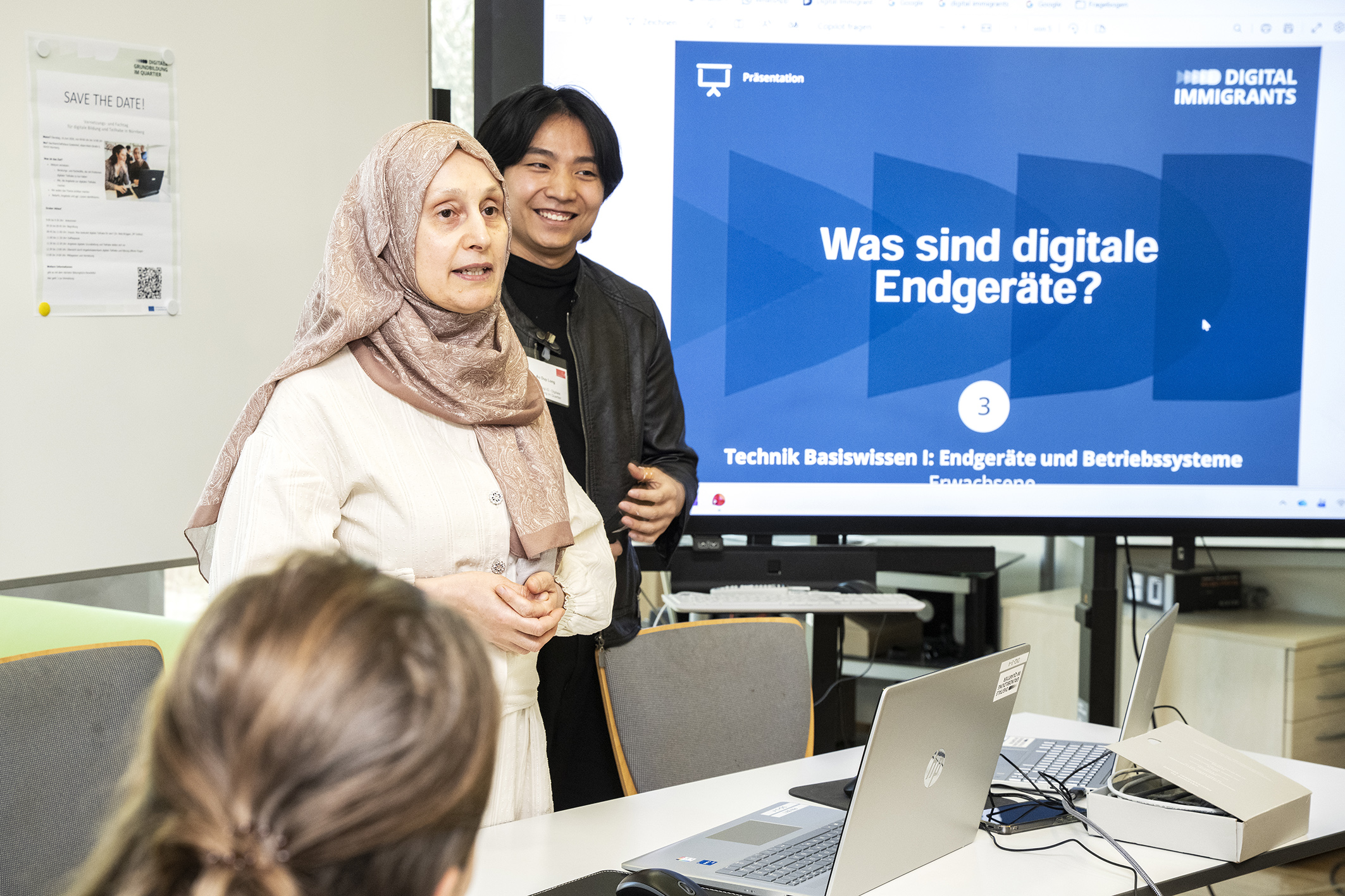Der dritte Workshop widmete sich der digitalen Grundbildung. Haupt- und Ehrenamtliche aus dem Projekt "Digi iQ - Digitale Grundbildung im Quartier" zeigten, wie Menschen, die Deutsch lernen, niedrigschwellig durch den Peer-to-peer-Ansatz technische und medienpädagogische Grundkompetenzen erwerben.