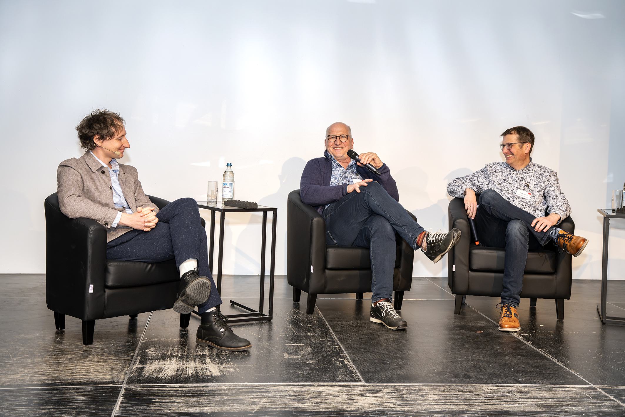 Nach den Workshops ging es zurück ins Plenum: Dort arbeiteten Harald Burczyk, Teilnehmer in einem Alphabetisierungskurs und Lehrkraft Sascha Dowidat im Gespräch heraus, wie gute Lernangebote zur Alphabetisierung aussehen sollten. Schnell wurde klar, dass insbesondere ein sehr niederschwelliger Zugang ohne lange Wartezeit sowie eine angenehme Arbeitsatmosphäre im Kurs mit positiver Gruppendynamik und ohne Druck zu den wichtigsten Gelingensbedingungen zählen. Deutlich wurde aber auch, dass Menschen, die schlecht Lesen und Schreiben können, entgegen vielen Vorurteilen nicht arbeitslos oder ausgegrenzt sind. So ist Harald Burczyk nicht nur Schüler von Sascha Dowidat im Alphakurs, sondern die beiden sind auch Kollegen in einem großen Unternehmen. Auch die Leo Studie hat festgestellt, dass 57 Prozent der funktionalen Analphabeten erwerbstätig sind. Harald Burczyk zeigte auf beeindruckende Weise, welche Leistungen erbracht werden müssen, um gesellschaftlich teilzuhaben ohne Lesen und Schreiben zu können.