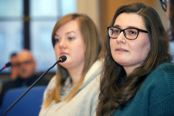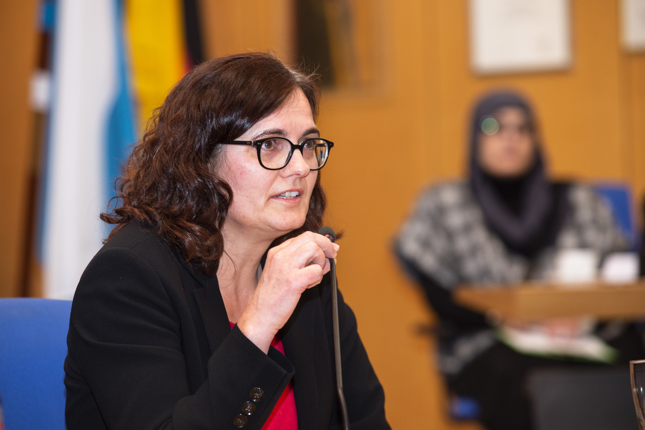 Im ersten Redebeitrag gingen Jessica Mogavero und Julia Wojcik auf den Spracherwerb von Erwachsenen ein. Exemplarisch für viele andere erfolgreiche Initiativen und Einrichtungen in Nürnberg, die niedrigschwellig und kostenlos Sprachkurse anbieten, stellten sie die Arbeit der Johanniter-Nürnberg im First-Steps- Integrationszentrum für Flüchtlinge vor. Ausschlaggebend für den Spracherfolg sei es, immer die aktuelle Lebenssituation der Lernenden zu berücksichtigen: Gute Kinderbetreuung sowie ein Lernen ohne Druck und Sanktionen sind hier ausschlaggebend. Wünschenswert wären weiterführende oder aufeinander aufbauende Kursangebote, die von First Steps mit den derzeitigen Kapazitäten nicht angeboten werden können. Hilfreich für die Teilnehmenden wäre auch die Möglichkeit, den erreichten Sprachstand offiziell und kostenlos zertifizieren zu lassen und damit einen Nachweis für weitere Integrationsbemühungen, zum Beispiel auf dem Arbeitsmarkt, zu haben. Beiratsmitglieder benannten im Zusammenhang mit der erfolgreichen Arbeit der Johanniter das Dilemma, dass gute Initiativen häufig projektförmig arbeiteten und dem Angebot damit eine langfristige Perspektive und Nachhaltigkeit fehle.