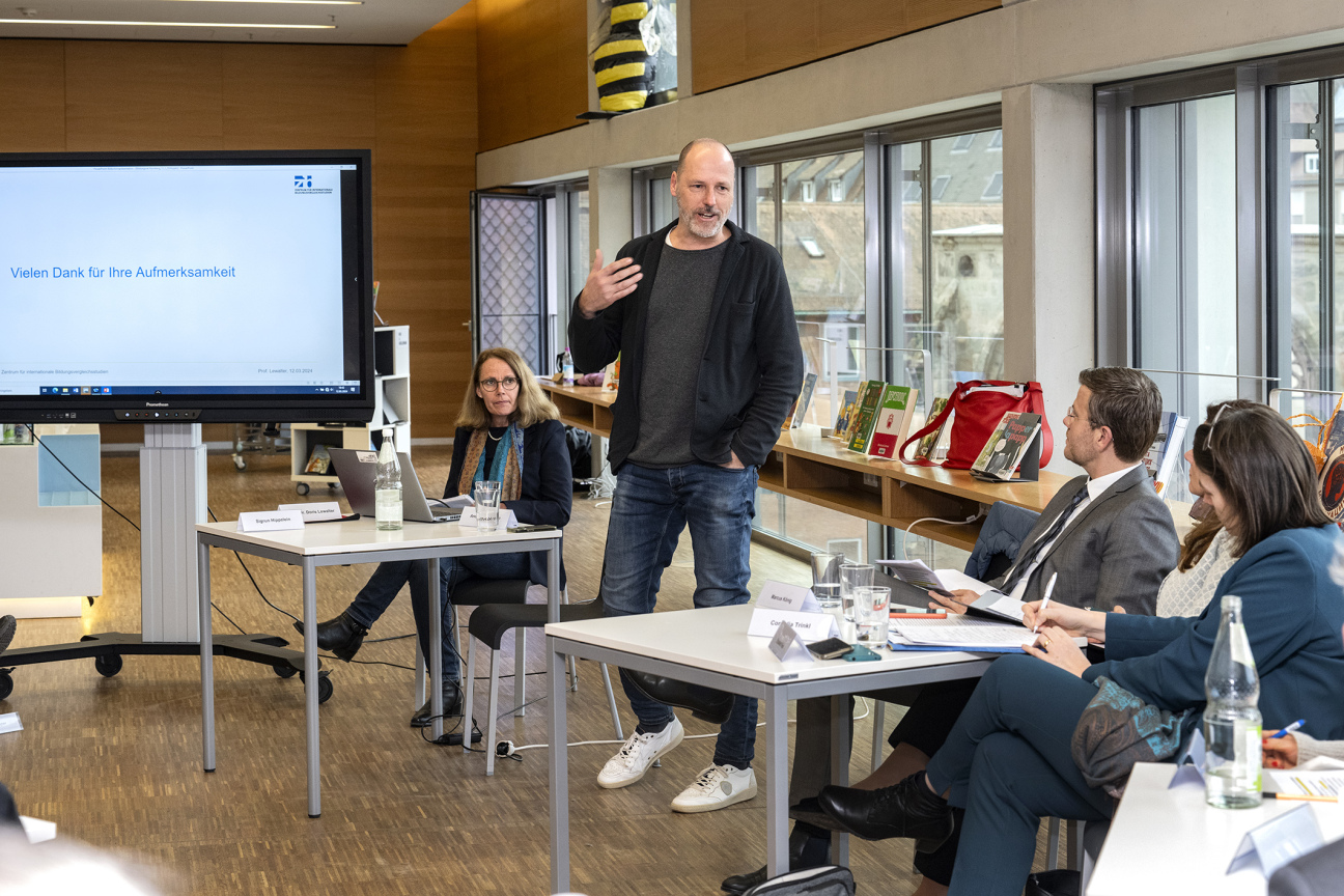 Am 12. März 2024 lud Oberbürgermeister Marcus König Prof. Dr. Doris Lewalter von der TU München in die 27. Sitzung des Bildungsbeirats in die Stadtbibliothek ein, um gemeinsam mit den Beiratsmitgliedern Ergebnisse der PISA-Studie und Empfehlungen für die kommunale Bildungsarbeit zu diskutieren.