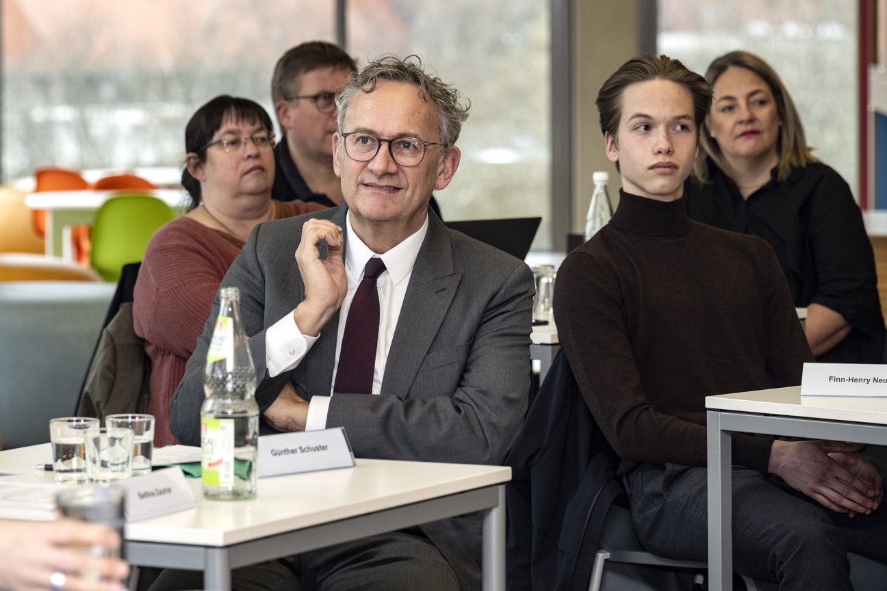Moderiert von Oberbürgermeister Marcus König diskutierten die Beiratsmitglieder die dargestellten Studienergebnisse und kamen in einen offenen Austausch über Verbesserungsvorschläge und Unterstützungsangebote. Thematisiert wurde u.a. die Bedeutung der frühzeitigen Diagnostik zur Einstufung individueller Förderbedarfe von Kindern und der Bedarf einer systematischen, bedarfsorientierten und diagnosebasierten Förderung der Kinder bereits vor der Grundschule und über diese hinaus. Ressourcen in der schulischen Bildung sollen nach Bedarf und gezielt eingesetzt werden, der Unterricht kontinuierlich weiterentwickelt und die Lehrkräftefortbildung weiter gestärkt werden. Die Beiratsmitglieder stimmten darin überein, dass eine Verbesserung der Situation einer bildungsbereichsübergreifenden Herangehensweise bedarf, die sowohl die Lebenslage der Schülerinnen und Schüler einbezieht als auch den Sozialraumbezug herstellt
