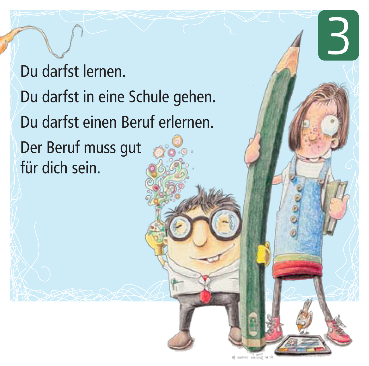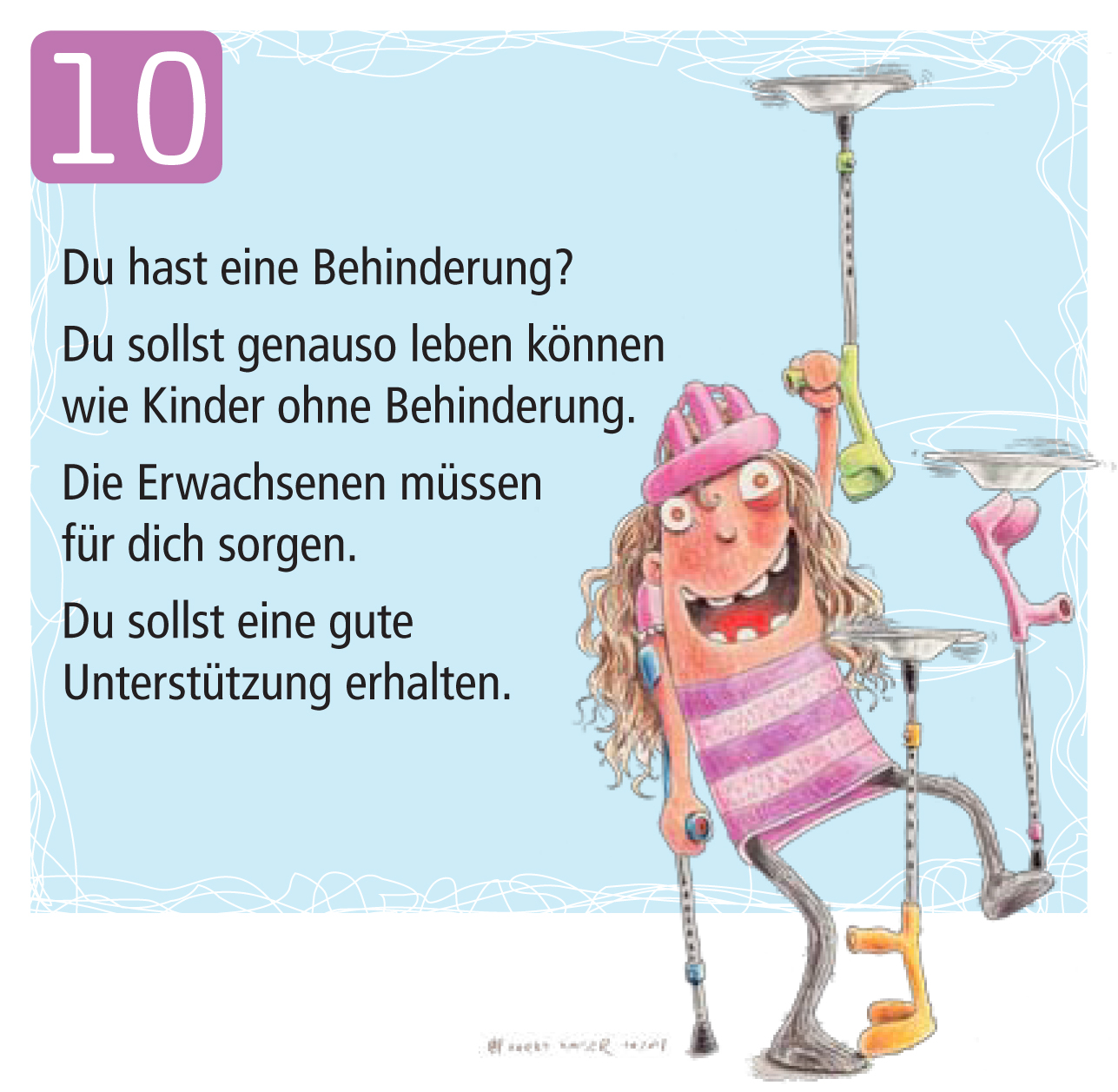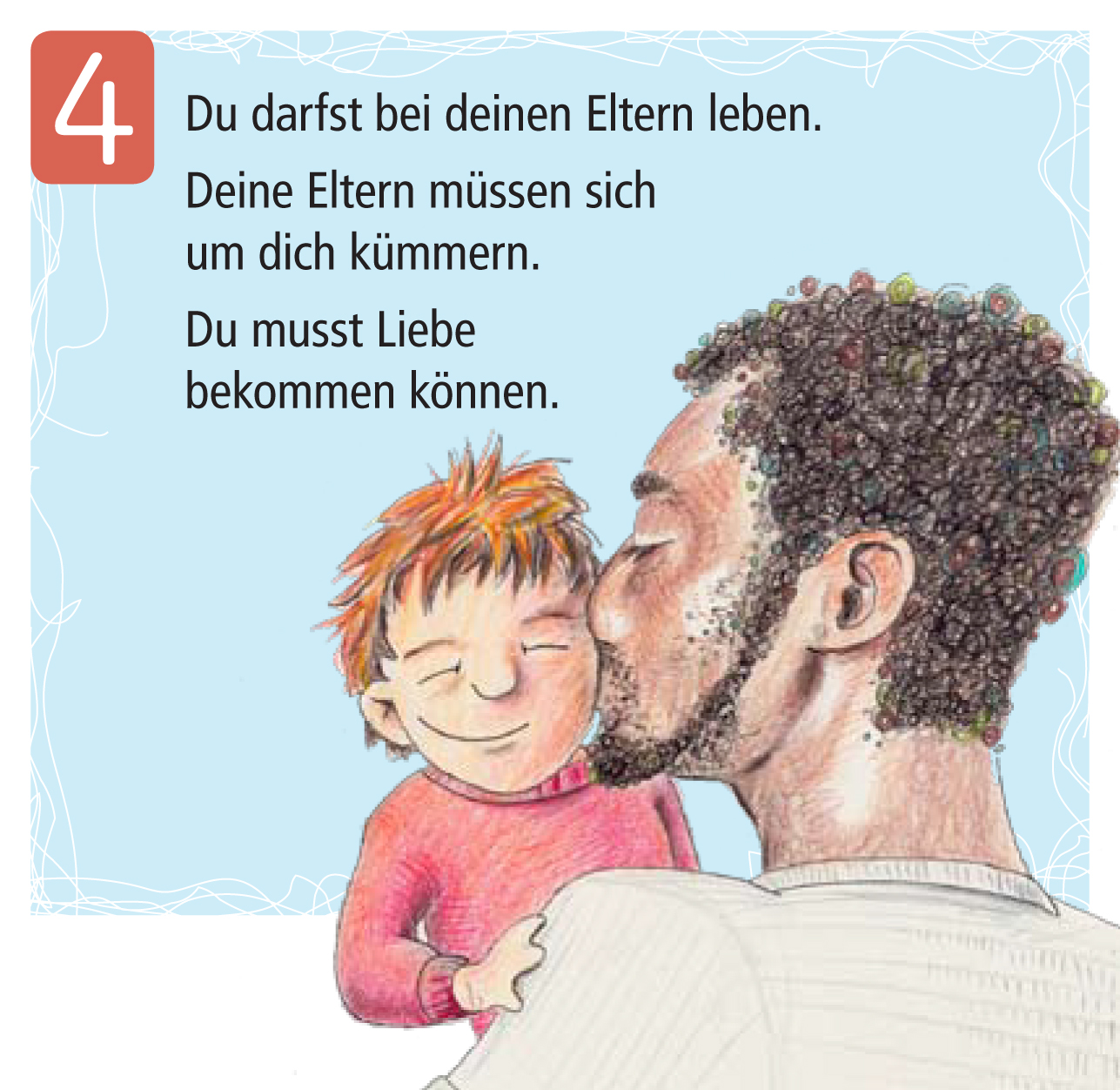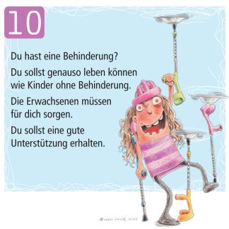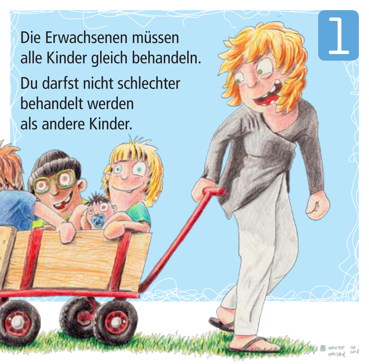 Kinder sollen ihre Rechte kennen und Erwachsene sie respektieren. Zur Vereinfachung werden die 54 Artikel oft zu den zehn wesentlichen Kinderrechten zusammengefasst.