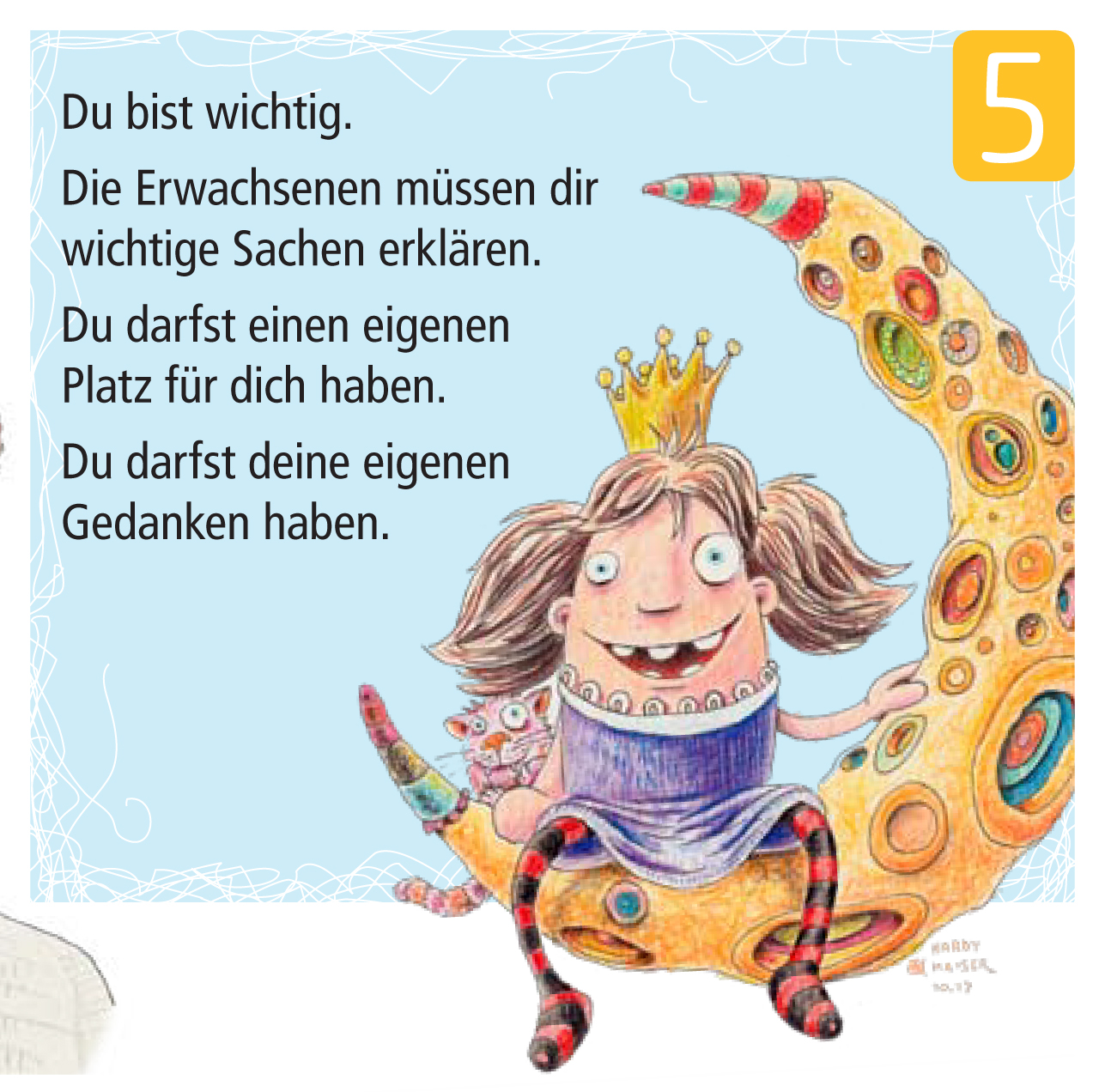 Wir haben diese 10 wesentlichen Kinderrechte in einfache Sprache übersetzen lassen. Der Popart-Künstler Hardy Kaiser hat sie illustriert und zu einem handlichen Bilderbuch zusammengefasst. Das Büchlein will als didaktisches Material und "Giveaway" für Unterricht, Workshops, Kinder- und Elternveranstaltungen in Nürnberg unterstützen.