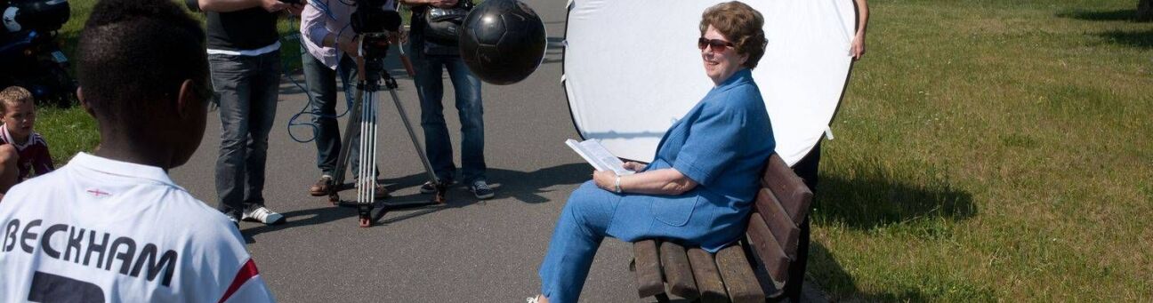 Der Clip "Fußballoma" wurde gedreht im Westpark Darsteller/-innen: Uschi Heublein - Übungsleiterin beim Postsportverein und Kinder- und Jugendliche aus dem städtischen Kinder- und Jugendhaus Bertha.