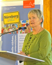 Elisabeth Ries, Referentin für Jugend, Familie und Soziales der Stadt Nürnberg betonte in Ihrer Begrüßungsrede, dass der Ausbau der Kindertagesstätte eine Herkulesaufgabe sei und bleibt, die viel mit beständiger Planung, Bautätigkeit, Raumsuche, Finanzierung und Suche nach Fachkräften zu tun hat. "Das Thema ist eng verknüpft mit dem Anliegen, Vätern und Müttern mit einer qualitativ guten Kindertagesbetreuung eine gute Vereinbarkeit von Familie und Beruf zu ermöglichen."