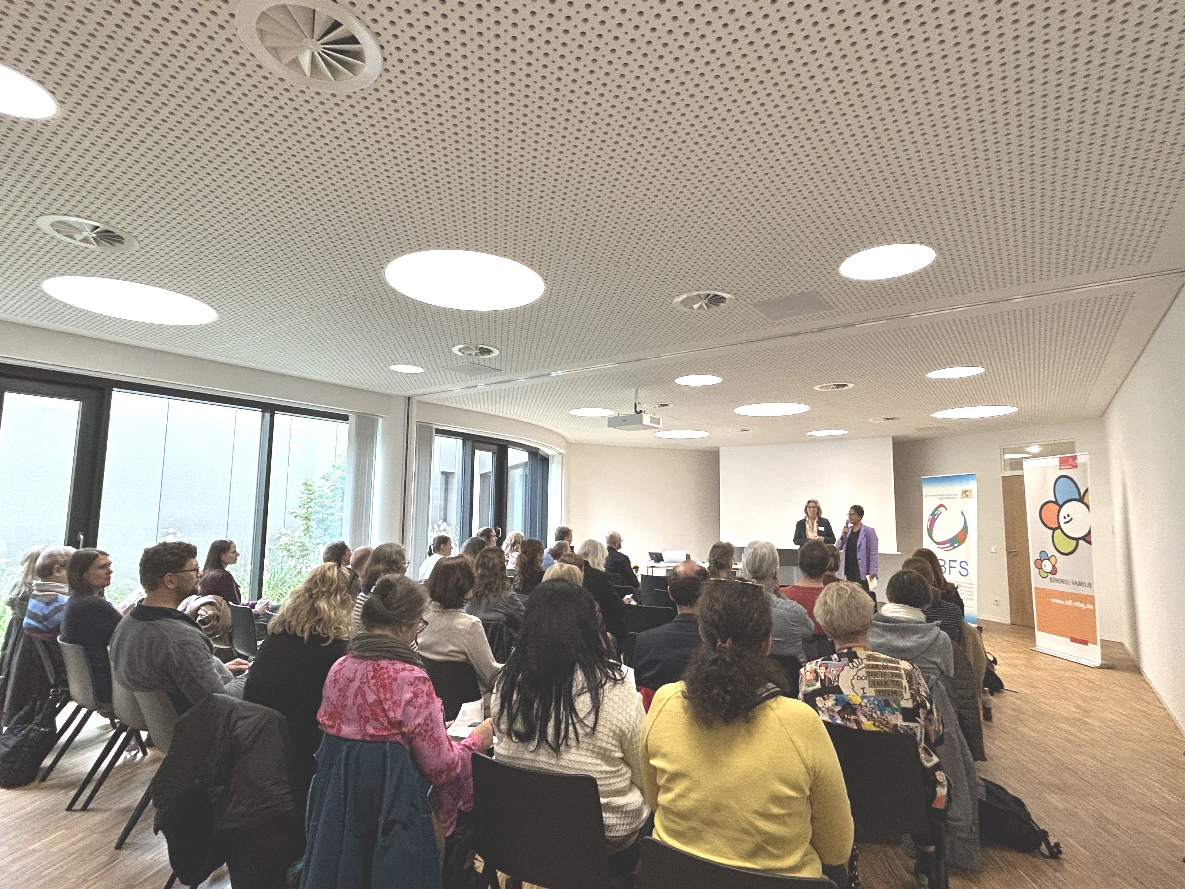 Am 16. Oktober 2025 fand im Zentrum Bayern Familie und Soziales unser Netzwerktreffen statt. Nach der Begrüßung durch Karin Wirsching, Leiterin der Regionalstelle Mittelfranken, und einem Grußwort von Elisabeth Ries, Referentin für Jugend, Familie und Soziales, widmeten sich die Teilnehmenden den Themen Kinderstartgeld und Vereinbarkeit von Familie und Beruf.