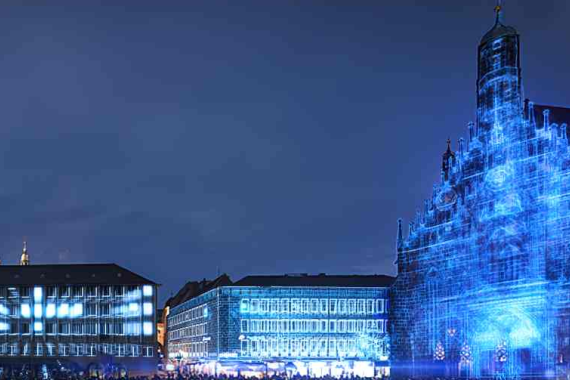 Für die Blaue Nacht Nürnberg wird BYCATCH in einer neuen, weiterentwickelten Version präsentiert, die mit Lichteffekten spielt und so eine zusätzliche Dimension erhält. Durch gezielte Lichtstrahlen werden die Nähte der luftgefüllten Tetrapoden sichtbar gemacht, was ihnen eine grafische Qualität verleiht und die Aufmerksamkeit auf ihre Konstruktion lenkt. Diese Lichtspiele erzeugen ein faszinierendes Wechselspiel zwischen Durchlässigkeit und Form – die Objekte wirken fast wie gezeichnete, schwebende Strukturen im Raum.