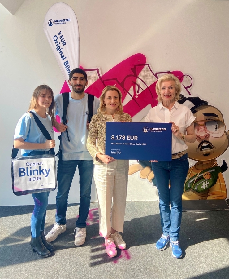 Kulturbürgermeisterin Prof. Dr. Julia Lehner, die Leiterin des Neuen Museum Nürnberg, Dr. Simone Schimpf, stellvertr. Leiter des DB Museums, Dr. Rainer Mertens, Leitung des Projektbüros Dr. Elisabeth Hartung und Projektleiterin der Blauen Nacht, Barbara Schwesig stellten das Programm der Blauen Nacht 2025 vor.