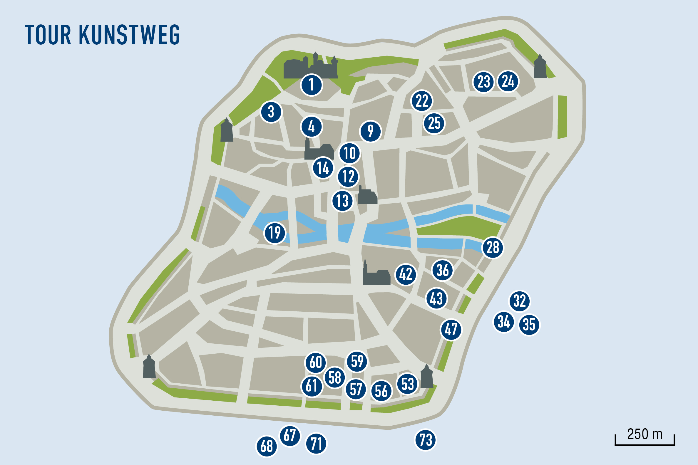 Wegweiser zu allen beteiligten Kunstmuseen, Galerien und Kunstvereinen.