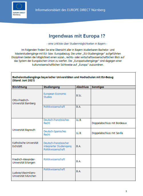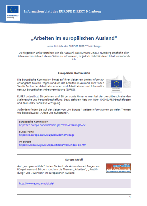 Gerne senden wir Ihnen die folgenden Informationsmaterialien zum Thema "Leben, lernen, arbeiten in der EU" kostenfrei zu. Mit einem Klick auf den angegebenen Link können Sie Ihre Bestellung aufgeben.
