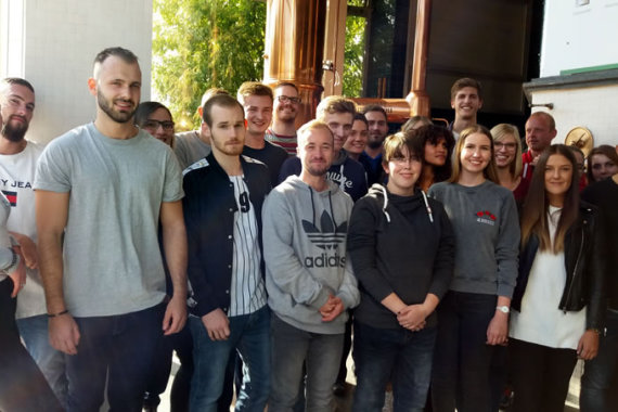 ... das ist alles, was die größte Bio-Brauerei der Welt, die Neumarkter Lammsbräu, für ihre 23 Biersorten verwendet. Dies und noch viel mehr durften die neuen Studierenden der Fachakademie für Wirtschaft dieses Jahrgangs bei der Betriebsbesichtigung erfahren. Nach einem kurzen Einstiegsfilm und einem interessanten Vortrag über die Bierherstellung brach man zu einem ausgiebigen Rundgang durch die eigene (Bio-)Mälzerei, die Lagerung, die Füllerei und noch weitere Stationen auf. Dabei lernte man unter anderem, dass das Getreide von Landwirten aus der Region und der Hopfen aus der Fränkischen Schweiz stammt und durfte die schmackhaften Malzkörner probieren. Den Höhepunkt jedoch bildete eine Kostprobe des selbst gezapften Zwickel, das sich alle schmecken ließen! Zum Abschluss hatten die Studierenden dann noch Gelegenheit, die verschiedenen Bier- und Limonadensorten beim gemütlichen Beisammensein zu probieren. Ein rundum gelungener Ausflug ins nahe Neumarkt und ein guter Einstieg in das zweijährige Studium an der Fachakademie!
