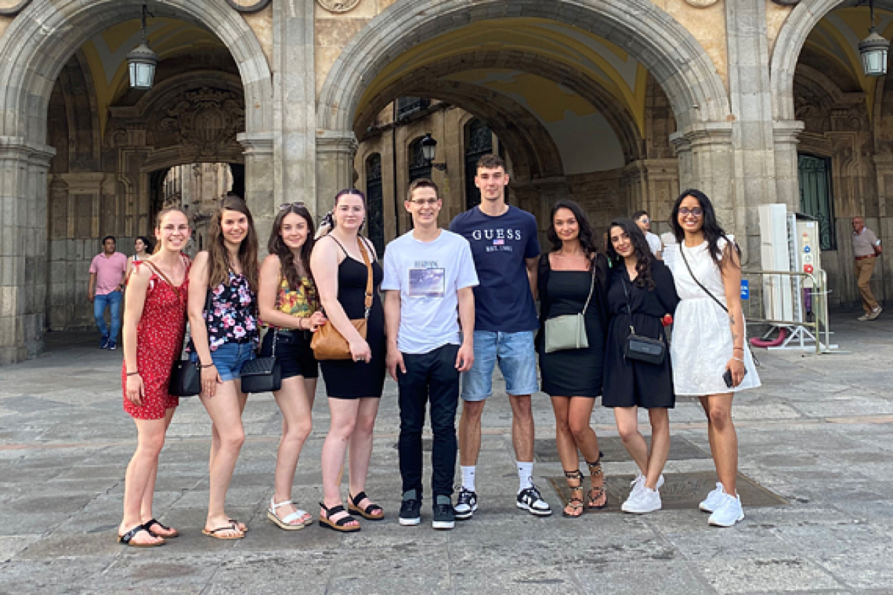 Nach einer zweijährigen Pause war es in diesem Jahr wieder so weit und neun Studierende der Fachakademie hatten die Möglichkeit einen zweiwöchigen Aufenthalt in Salamanca wahrzunehmen. Aufgrund eines Feiertages in Spanien begann der Unterricht erst am Dienstag und die Studierenden nutzten diese Gelegenheit, um einen ersten Eindruck von der Stadt zu erhalten. Die nächsten Tage bis zum Wochenende vergingen wie im Flug. Täglich von 9 Uhr bis 14 Uhr erhielten die Studierenden einen für sie abgestimmten Unterricht am Colegio Delibes um ihre Sprachkenntnisse zu vertiefen und weiter auszubauen. Auch am Nachmittag und Abend wurde es nicht langweilig, denn die Sprachschule bot ein täglich wechselndes Freizeitprogramm für seine Schüler/innen an. Hier hatten die Studierenden die Möglichkeit die spanische Kultur hautnah zu erleben. Dabei kamen natürlich auch nicht die kulinarischen Vorzüge Spaniens zu kurz. Egal ob bei Tapas am Plaza Mayor oder einem Besuch in einem traditionell spanischen Restaurant, hungrig ging hier selten jemand nach Hause.