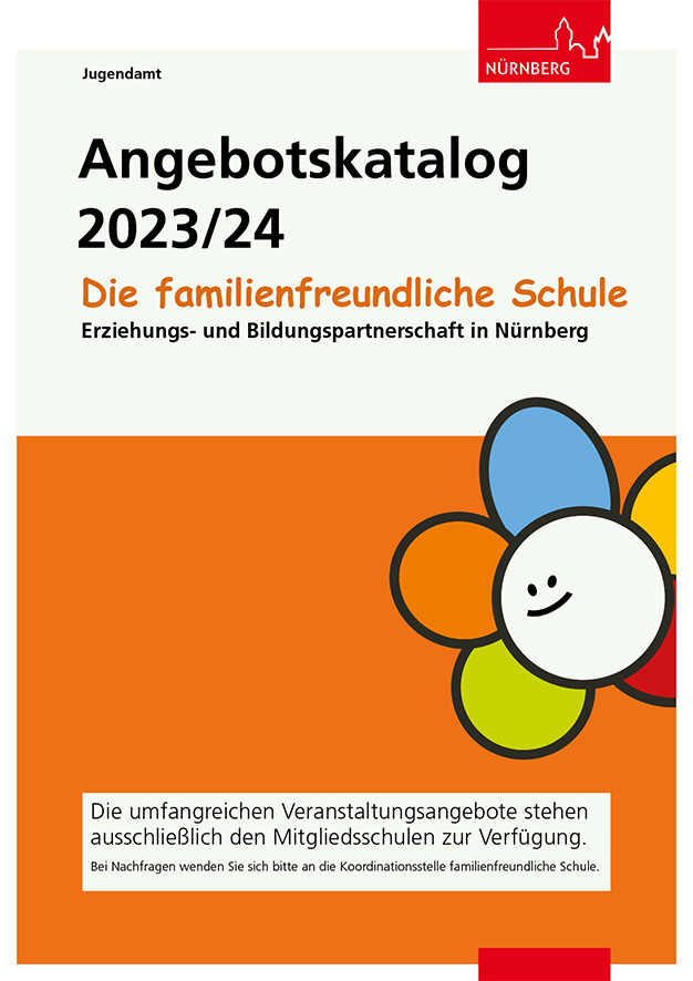 Exklusiv für die Mitgliedsschulen im Verbund der familienfreundlichen Schule stellt die Koordinationsstelle der familienfreundlichen Schule mit dem Angebotskatalog ein umfangreiches Bildungsprogramm zur Verfügung, das der Umsetzung der Erziehungs- und Bildungspartnerschaft dient. Bei der jährlichen Aktualisierung werden aktuelle Themen aufgenommen. Der Angebotskatalog umfasst: Veranstaltungen für Eltern, Lehrkräfte, pädagogische Fachkräfte und Schülerinnen und Schüler.
