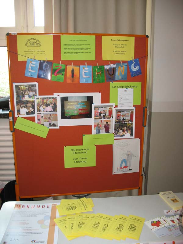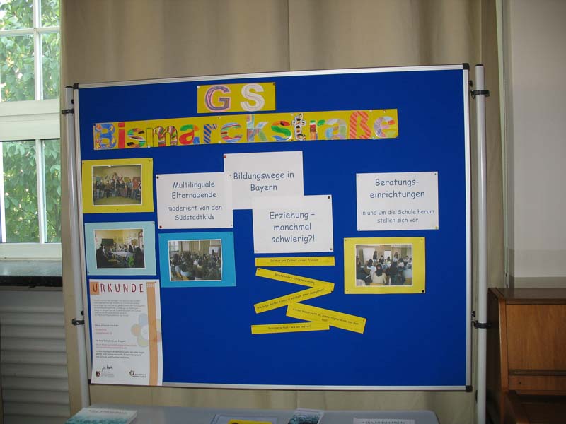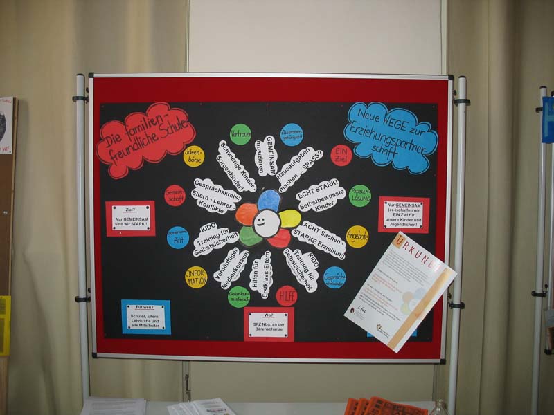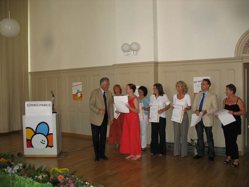 Für ihre Bemühungen um eine familienfreundliche Schule erhielten die teilnehmenden Schulen eine Urkunde durch Herrn Bürgermeister Förther in der Aula der Bismarckschule. Darüber hinaus konnten die familienfreundlichen Projekte der teilnehmenden Schulen in ihrer Vielfalt guter Ideen und Konzepte an Bilder- und Konzeptwänden besichtigt werden.