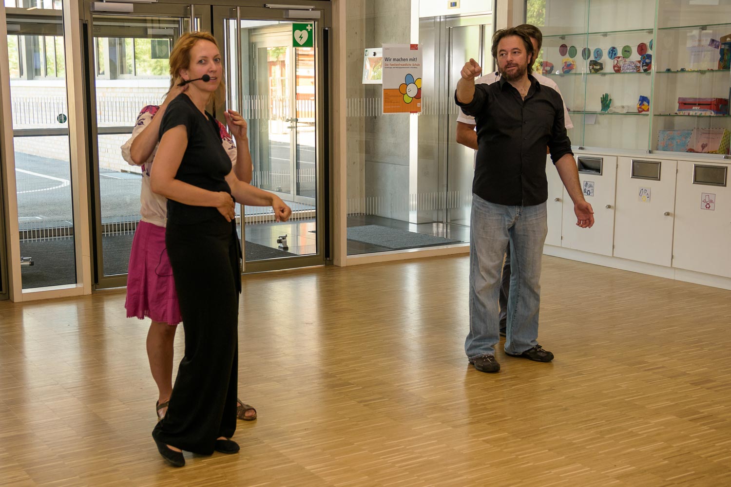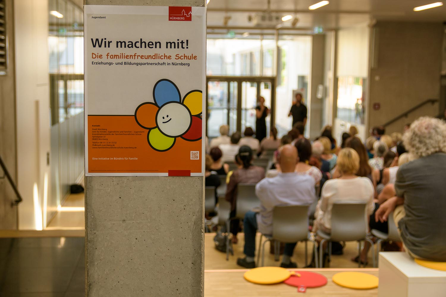Die Veranstaltung begann mit einer heiteren Einlage des Improvisationstheaters ex&hopp. Nach der Begrüßung durch Tanja Klieber, Rektorin der Michael-Ende-Schule und Birgit Schubert, Leiterin des integrierten Horts an der Michael-Ende-Schule folgten Statements von Dr. Kerstin Schröder und Stefan Kuen. Der Nürnberger Elternverband konnte krankheitsbedingt leider nicht teilnehmen.