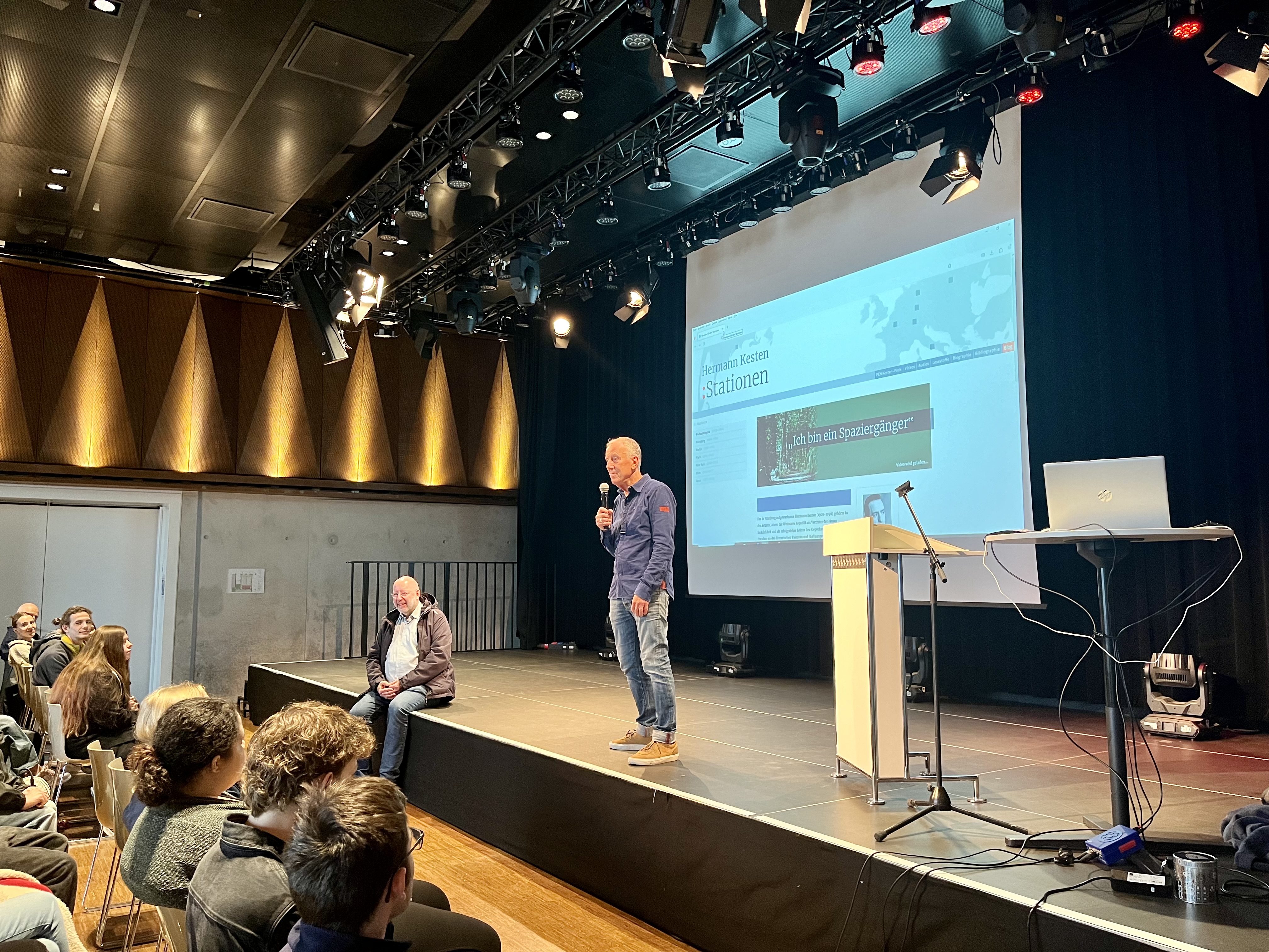 Am 2. Oktober 2024 hielt Herr Sedghi für unsere Schülerschaft einen sehr informativen Vortrag über unseren Namensgeber Hermann Kesten. Seine Präsentation diente als Auftaktveranstaltung für unseren Projekttag „Schule ohne Rassismus/Schule mit Courage“.
