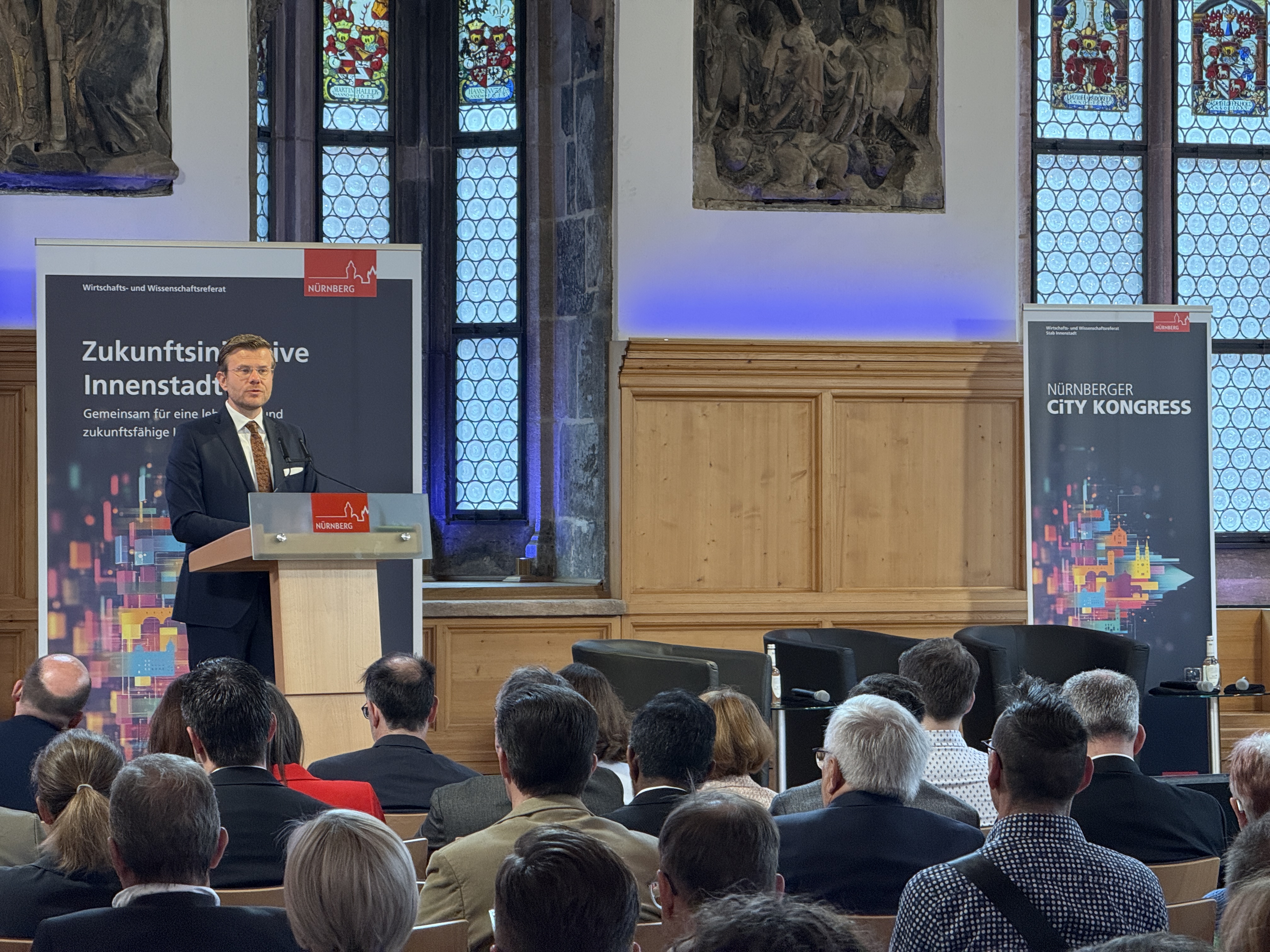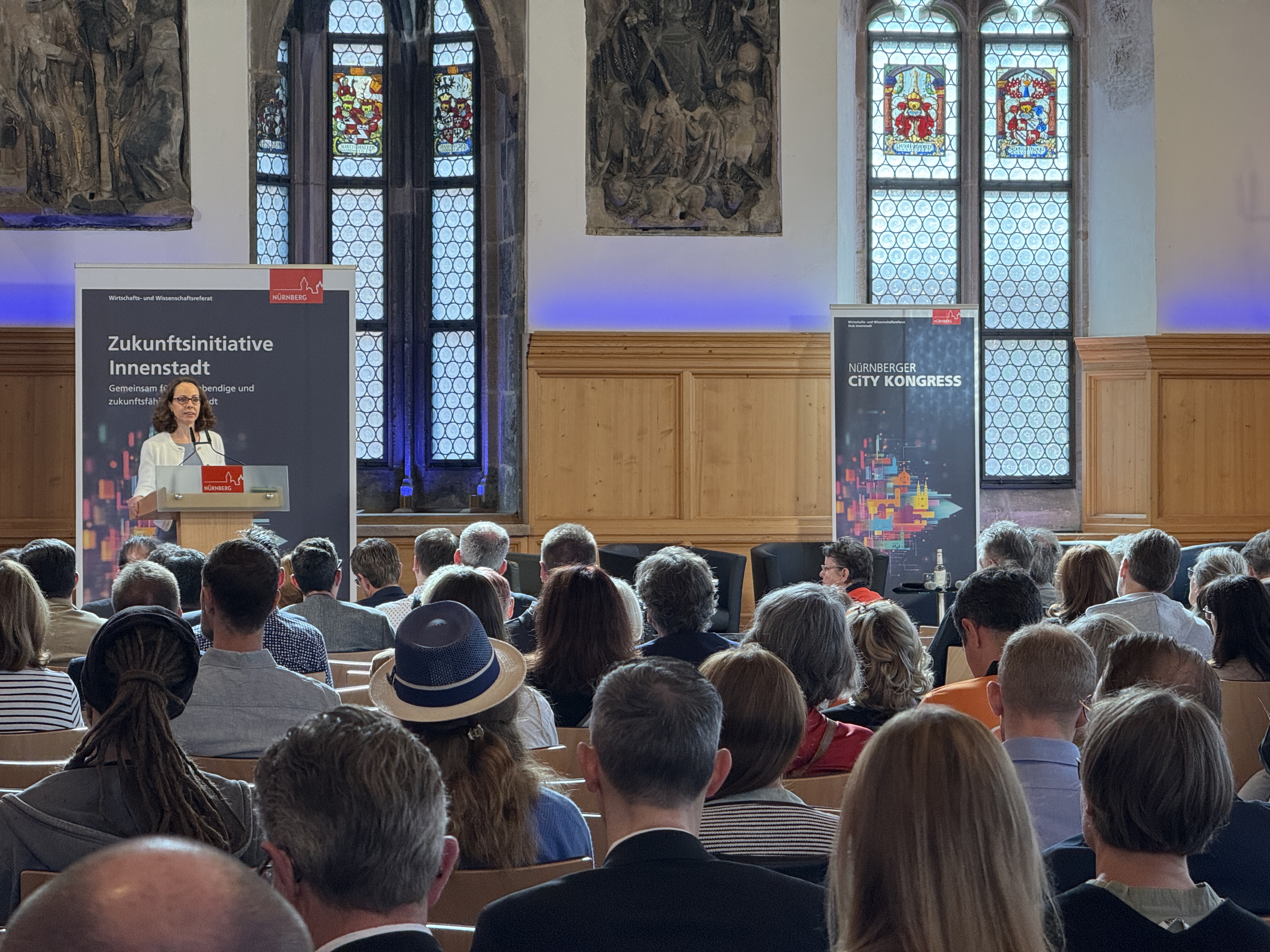 Der City Kongress am 27. Mai 2025 hat eine neue Phase der Zusammenarbeit für eine lebendige Innenstadt eröffnet. Unter dem Motto „Innenstadt-Wandel gemeinsam gestalten“ versammelten sich rund 180 Vertreterinnen und Vertreter aus Wirtschaft, Kammern, Wissenschaft, Stadtgesellschaft, Stadtverwaltung und Politik, um über die Zukunft der Innenstadt zu diskutieren und neue Impulse zu setzen. Der Stab Innenstadt im Wirtschafts- und Wissenschaftsreferat organisierte den Kongress in enger Zusammenarbeit mit weiteren Geschäftsbereichen der Stadtverwaltung sowie dem Polizeipräsidium Mittelfranken und der Congress- und Tourismus-Zentrale Nürnberg.