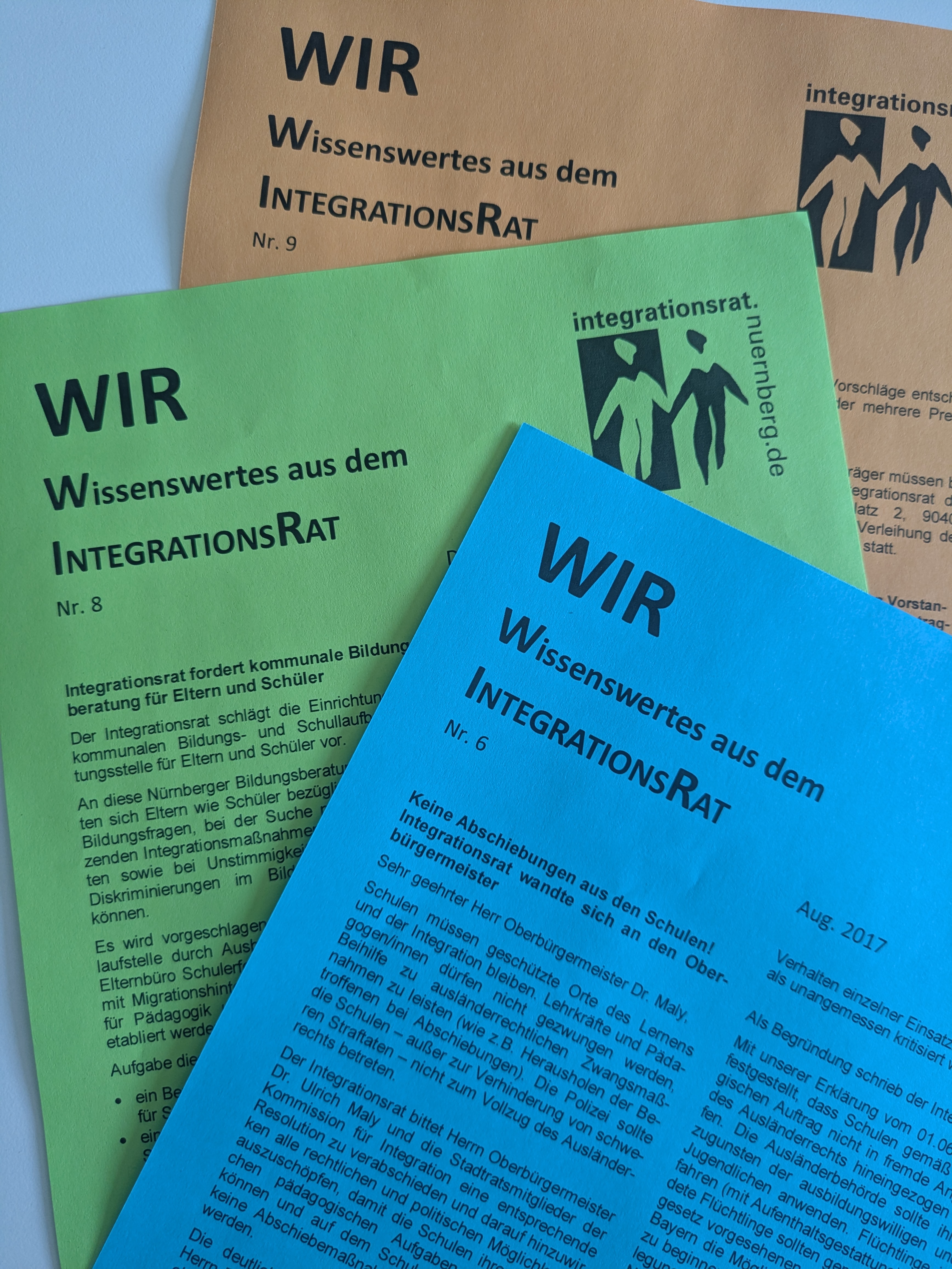 Der Integrationsrat veröffentlicht in nicht regelmäßigen Abständen die relevanten Beschlüsse und wichtigen Informationen über seine Arbeit in dem Infoblatt WIR - seit Mai 2021 in einem neuen Format als digitaler Newsletter.