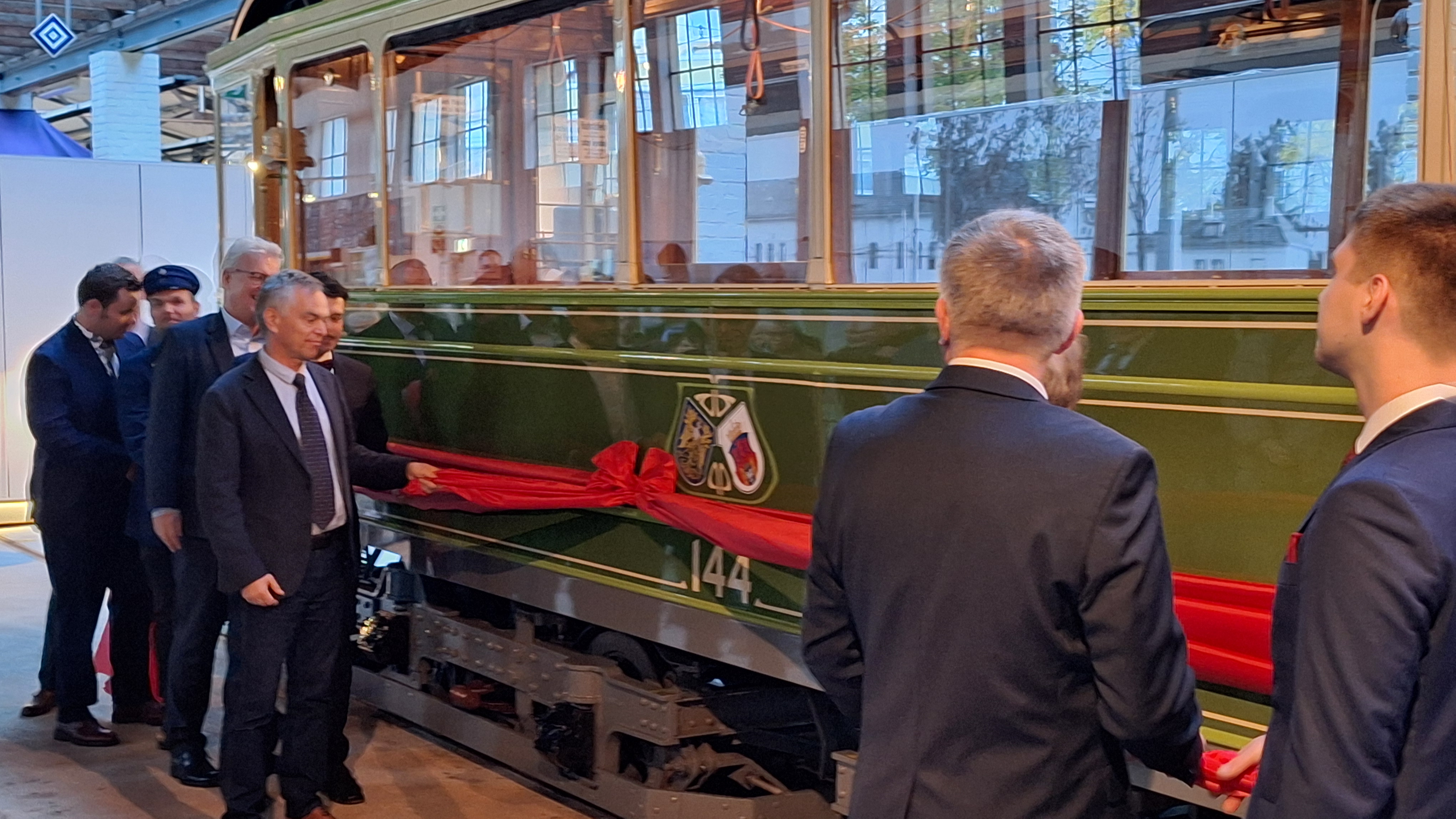 Im Februar 2024 war es dann soweit. Krakaus Stadtpräsident Jacek Mjchrowski, Nürnbergs Bürgermeister Christian Vogel, Vertreter der VAG, MPK und zahlreiche Gäste weihten die neu entstandenen Zwillingswagen in Krakau offiziell ein.