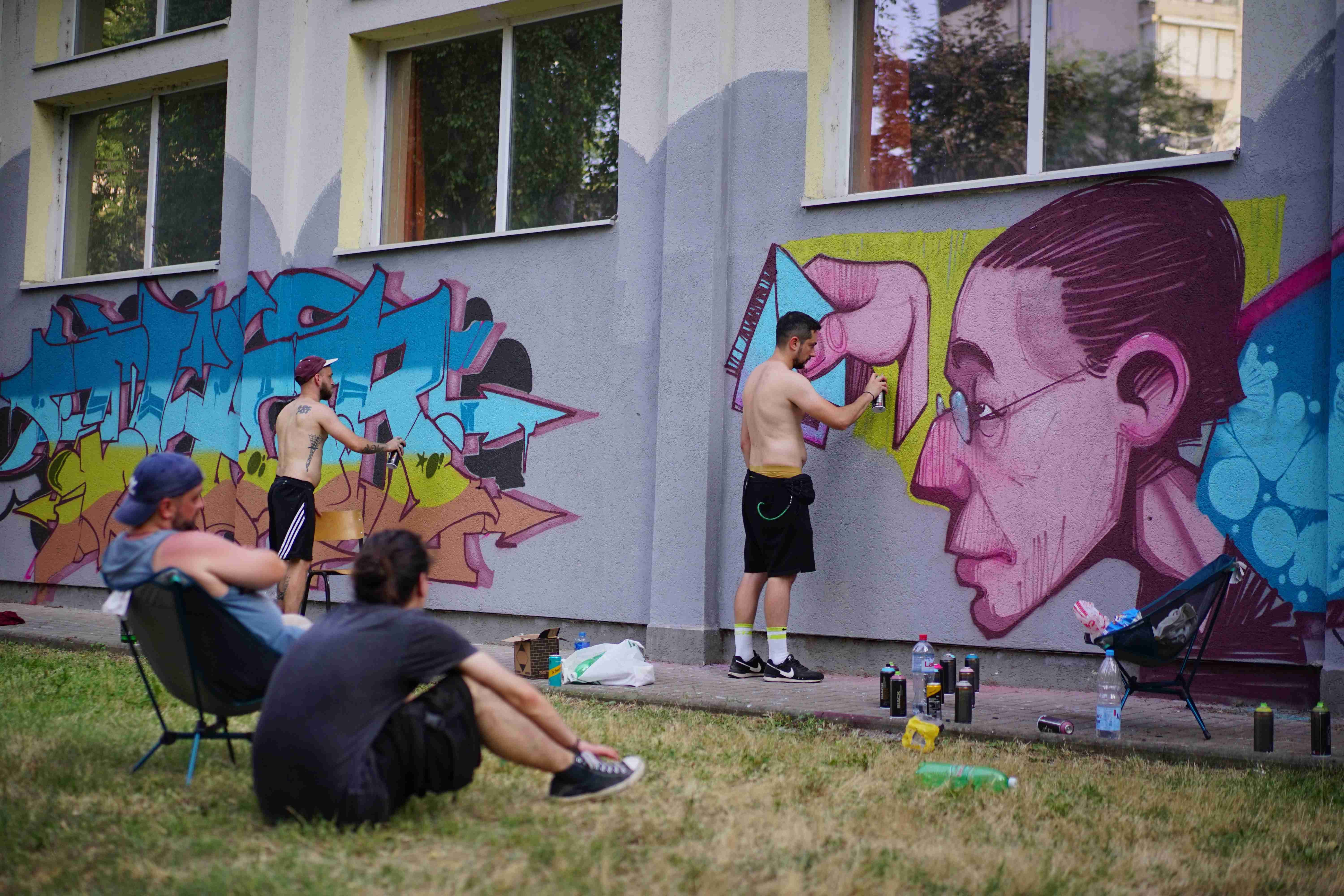Vom 14. bis 16. Juli 2023 gestalteten insgesamt 12 Streetartkünstler aus Nürnberg und aus Skopje ein gemeinsames Kunstwerk an einer 80 Meter langen Wand in Nordmazedoniens Hauptstadt.