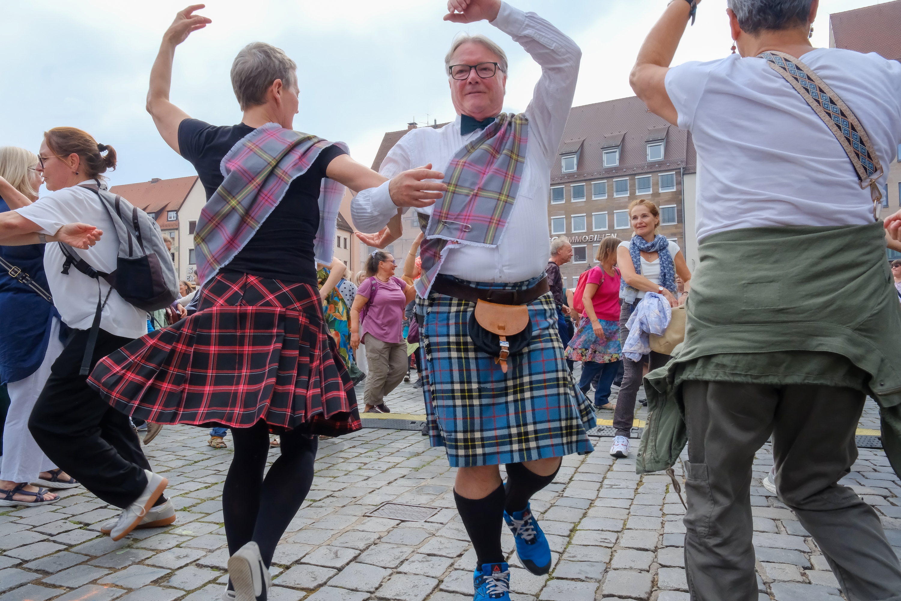 Mit viel Leidenschaft und Freude wird auch in Nürnberg der „Ceilidh-Tanz“ gefeiert. Denn egal ob jung oder jung geblieben, Profi oder mit zwei linken Füßen gesegnet – beim schottischen Tanzen geht es nicht um Perfektion, sondern vor allem um den Spaß.