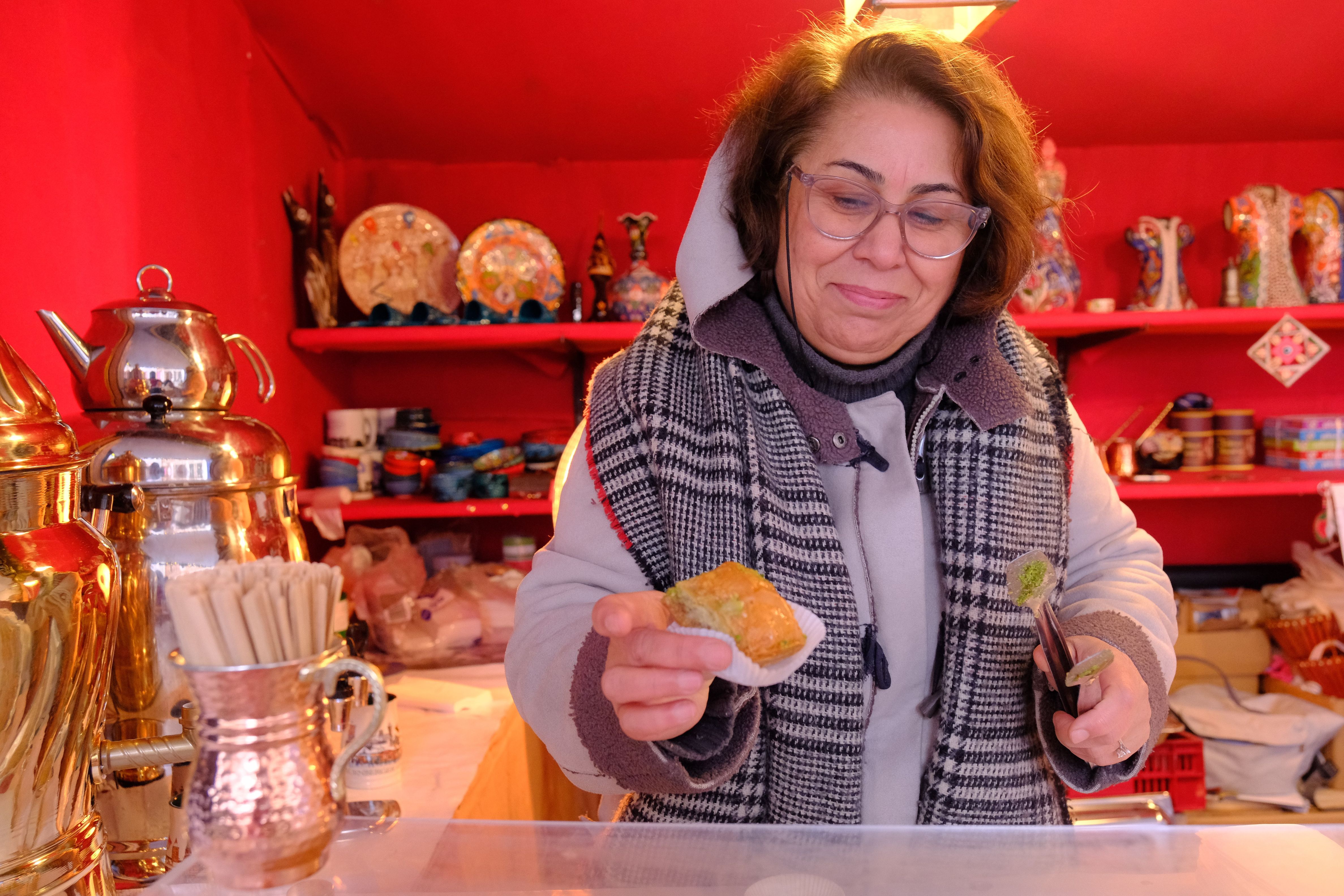 Wer Sehnsucht nach türkischen Gerüchen, kulinarischen Spezialitäten und farbenfrohen Geschenken hat, sollte unbedingt an dieser Bude vorbeikommen.