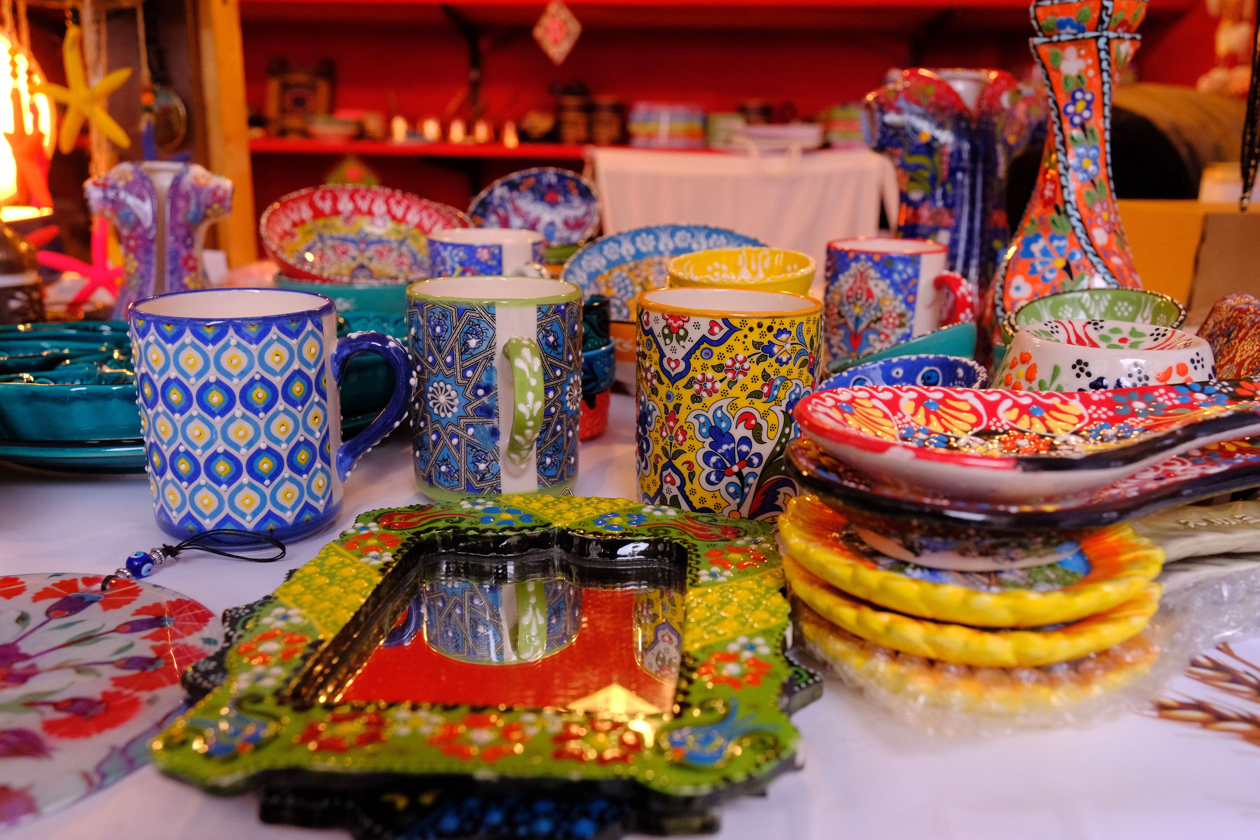 Auch farbenfrohe Textilien, Keramik- und Dekoprodukte werden angeboten. Diese changieren zwischen fein ziselierten und minimalistischen Motiven. Und selbstverständlich gibt es das Nazar-Amulett in verschiedenen Größen und Ausführungen.