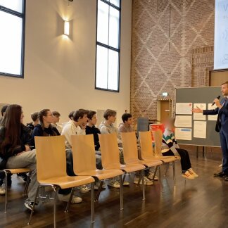 Hier konnte nun die Klasse 9c ihre Fragen direkt an die Verantwortlichen stellen und bekam dazu auch immer lösungsorientierte Antworten. Weiteres Highlight: Oberbürgermeister Marcus König war ebenfalls da, hat sich viel Zeit genommen, ist auf die Anliegen der Schülerinnen und Schüler eingegangen und hat von seinen Erfahrungen erzählt.