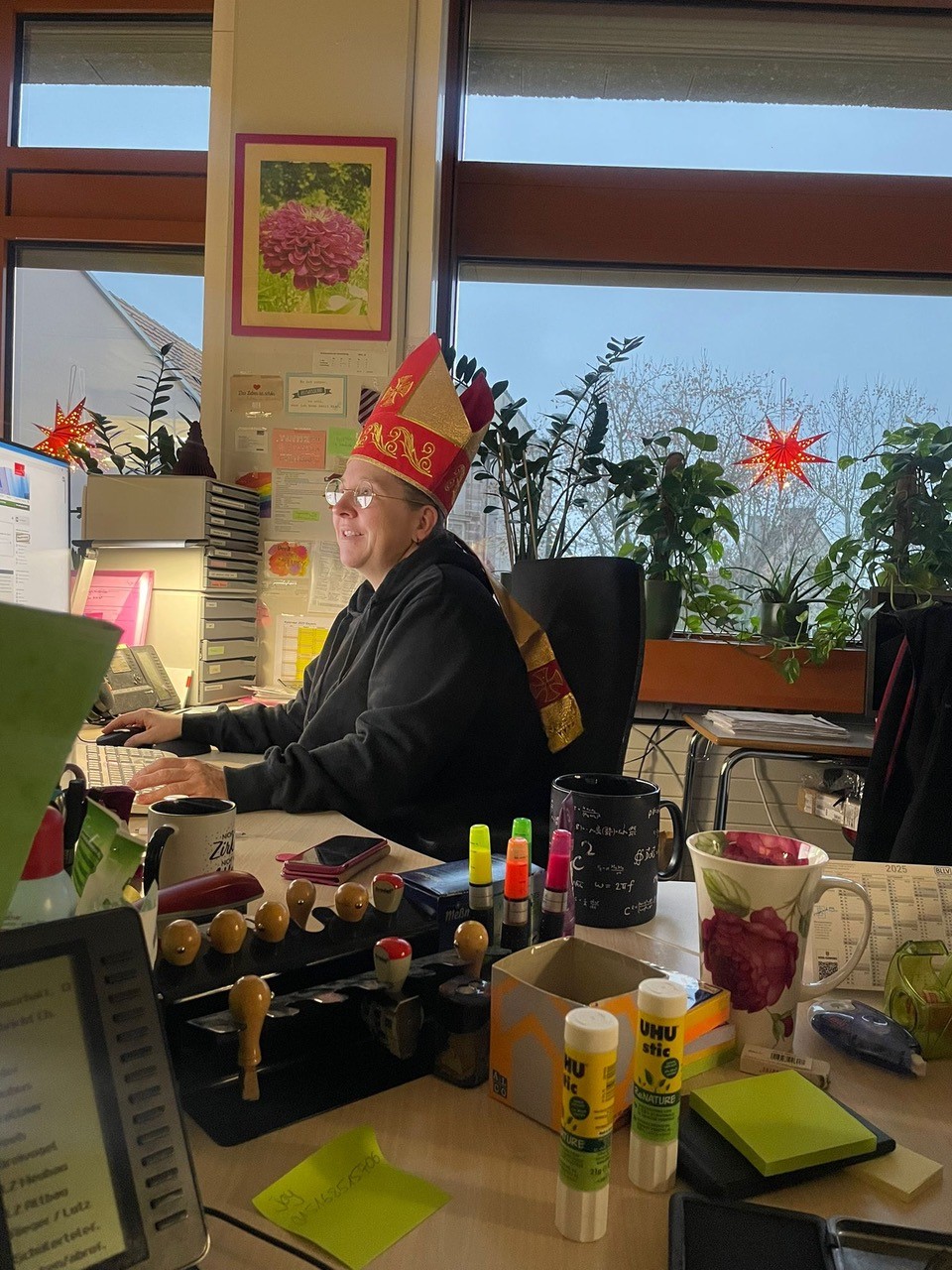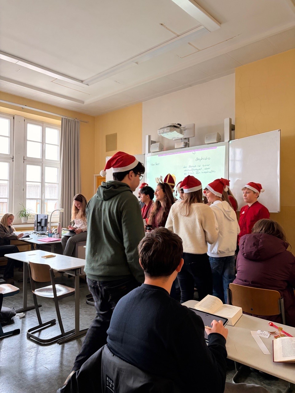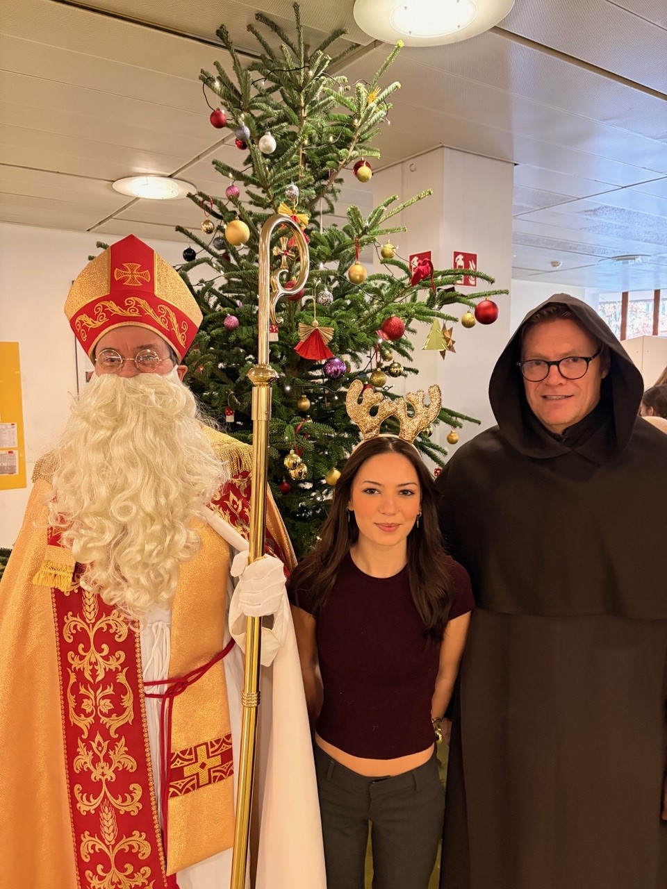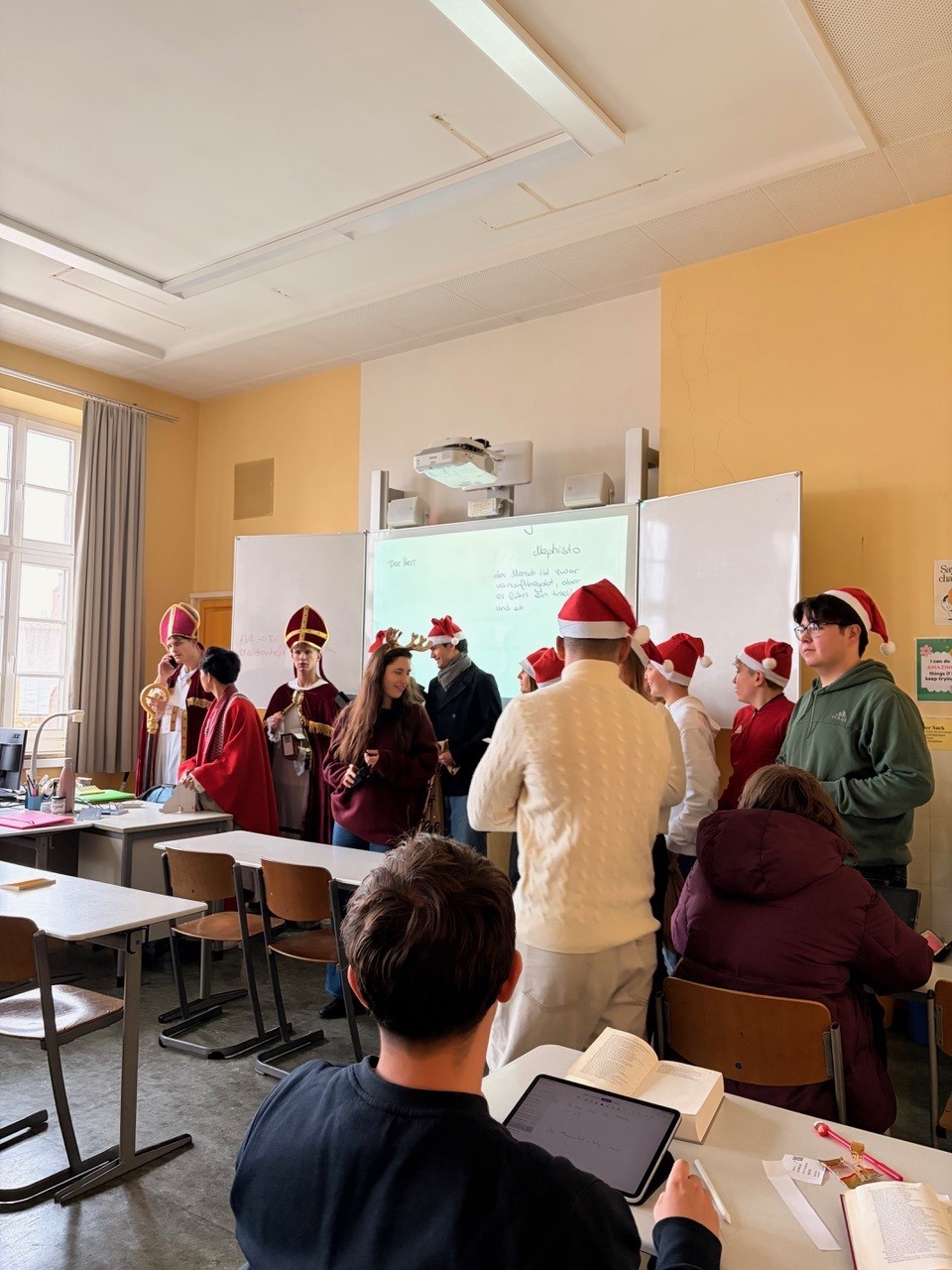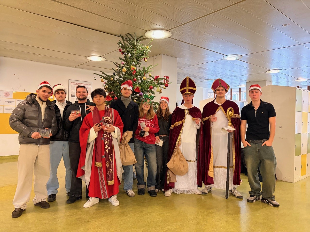 Jeder Schüler und jede Schülerin bekamen heute eine Weihnachtskarte und einen kleinen Fair-Trade-Nikolaus von der SMV, in den 5. Klassen waren auch der Nikolaus und sein Knecht Ruprecht dabei.
